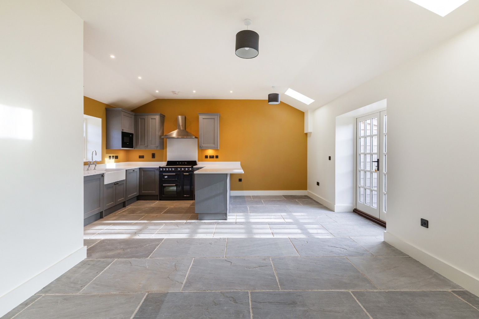 Fully fitted kitchen appliances, quartz worktops and a SMEG range oven