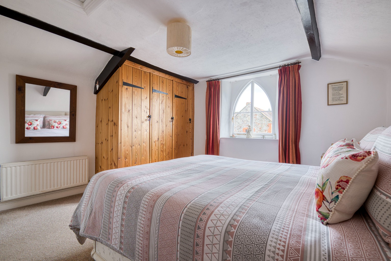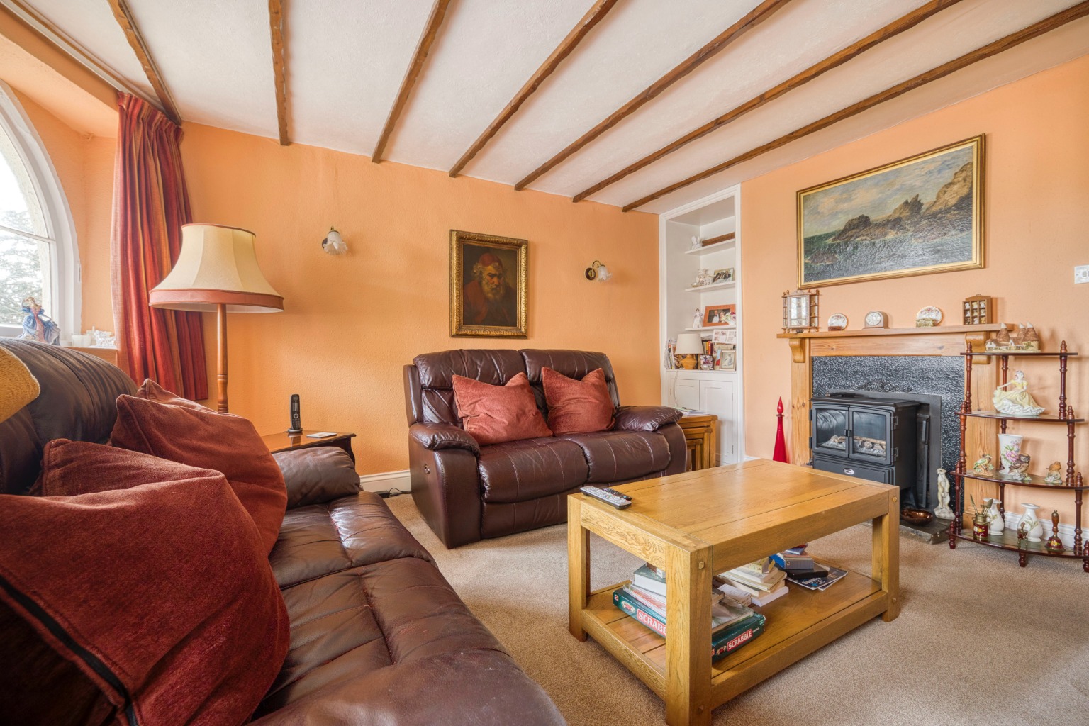 The sitting room has a unique bowed front with 3 charming arched windows. There is a painted timber alcove cupboard and ...