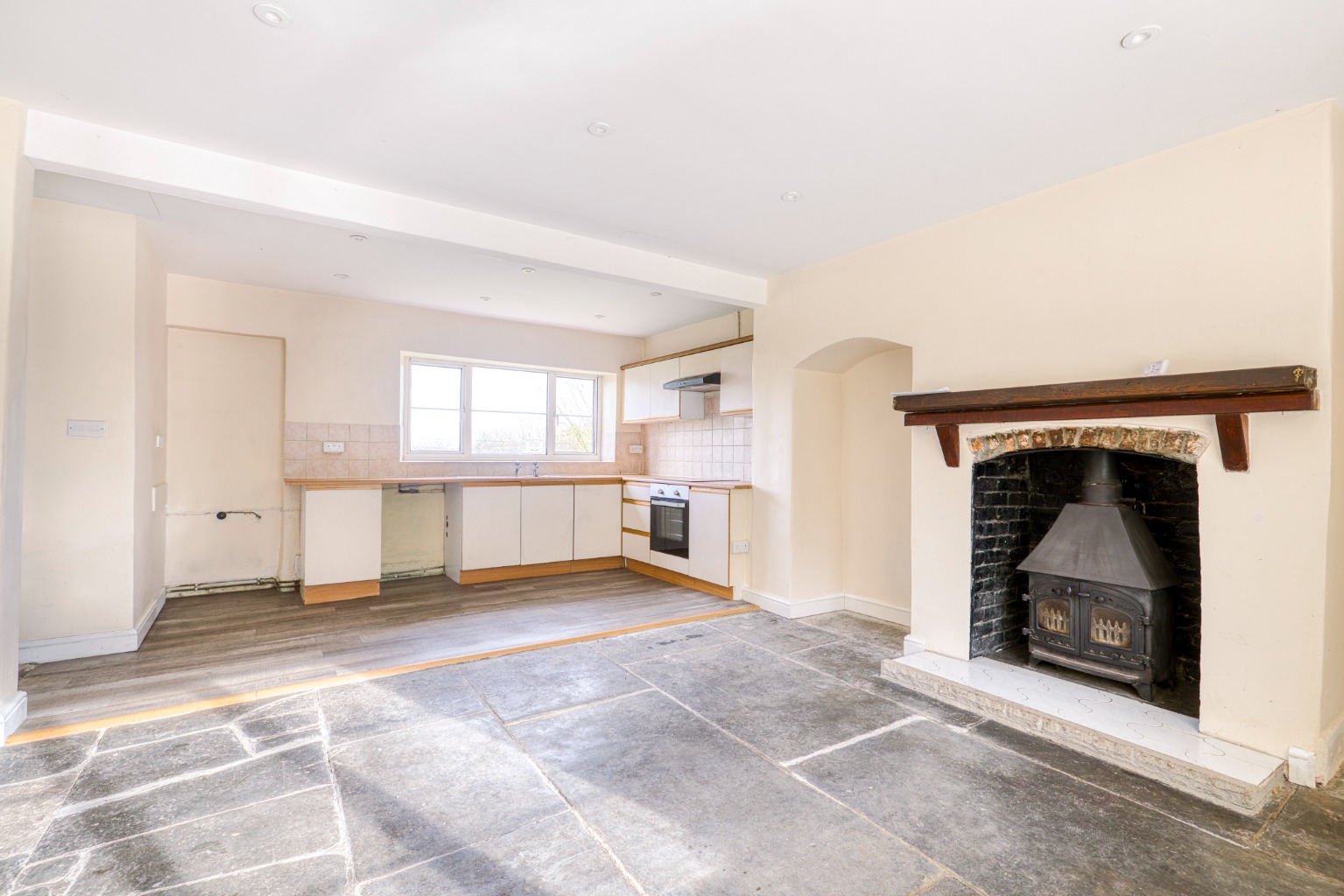 The accommodation is well presented throughout and retains a number of appealing original features. The front door opens into an open-plan living space that incorporates sitting, dining, and kitchen areas, enhanced by flagstone flooring and views across the surrounding landscape. The kitchen is well equipped with an electric oven and hob with plumbing for further white goods.