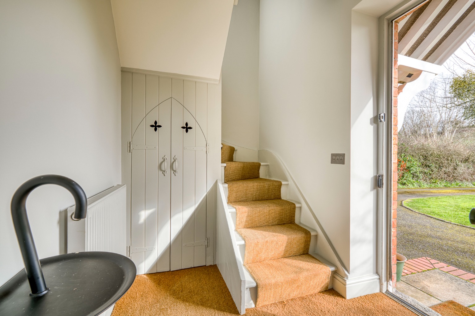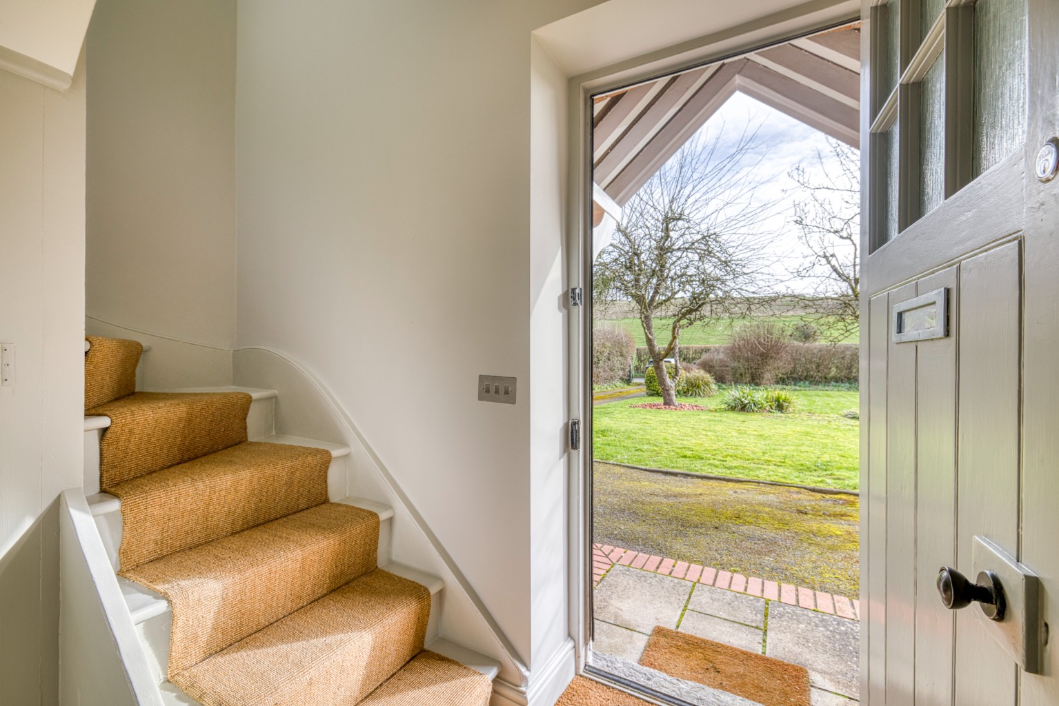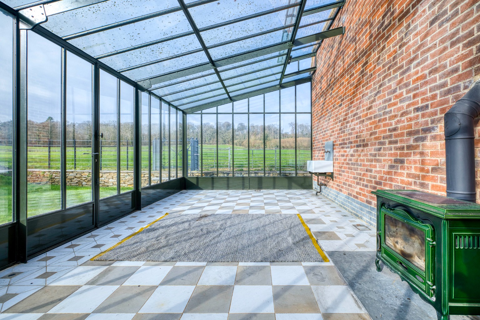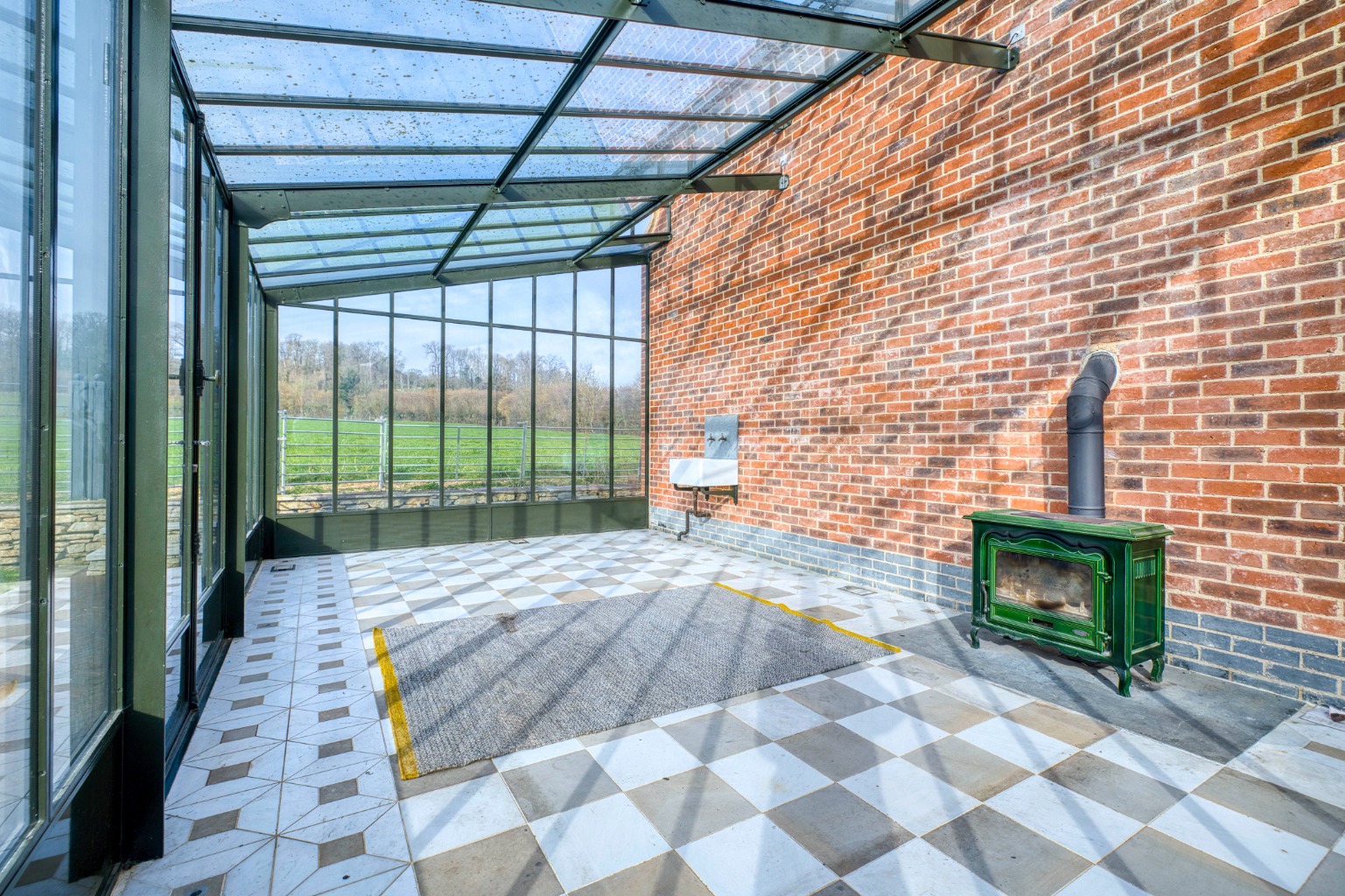 Garage, driveway parking, lawned gardens and bespoke detached glasshouse with wood-burner for year-round use.