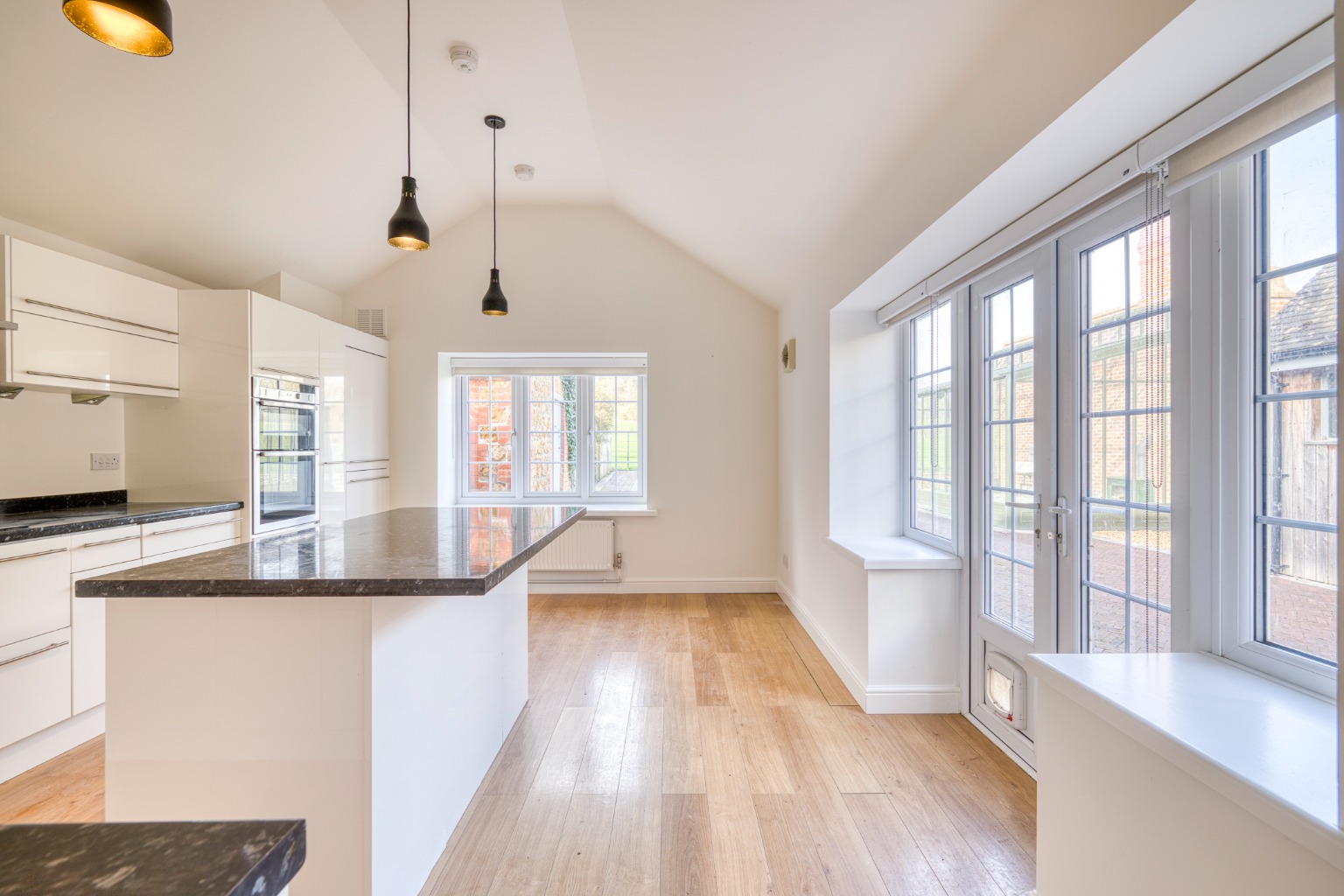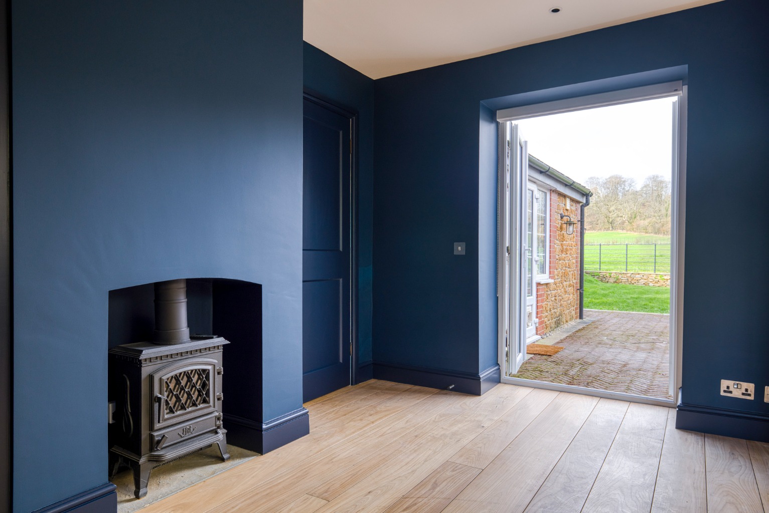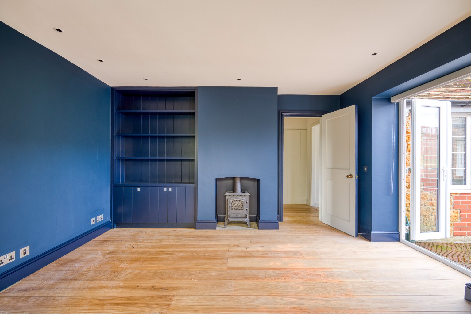 Sitting room with wood burner, contemporary kitchen/dining room with appliances, additional reception room/study