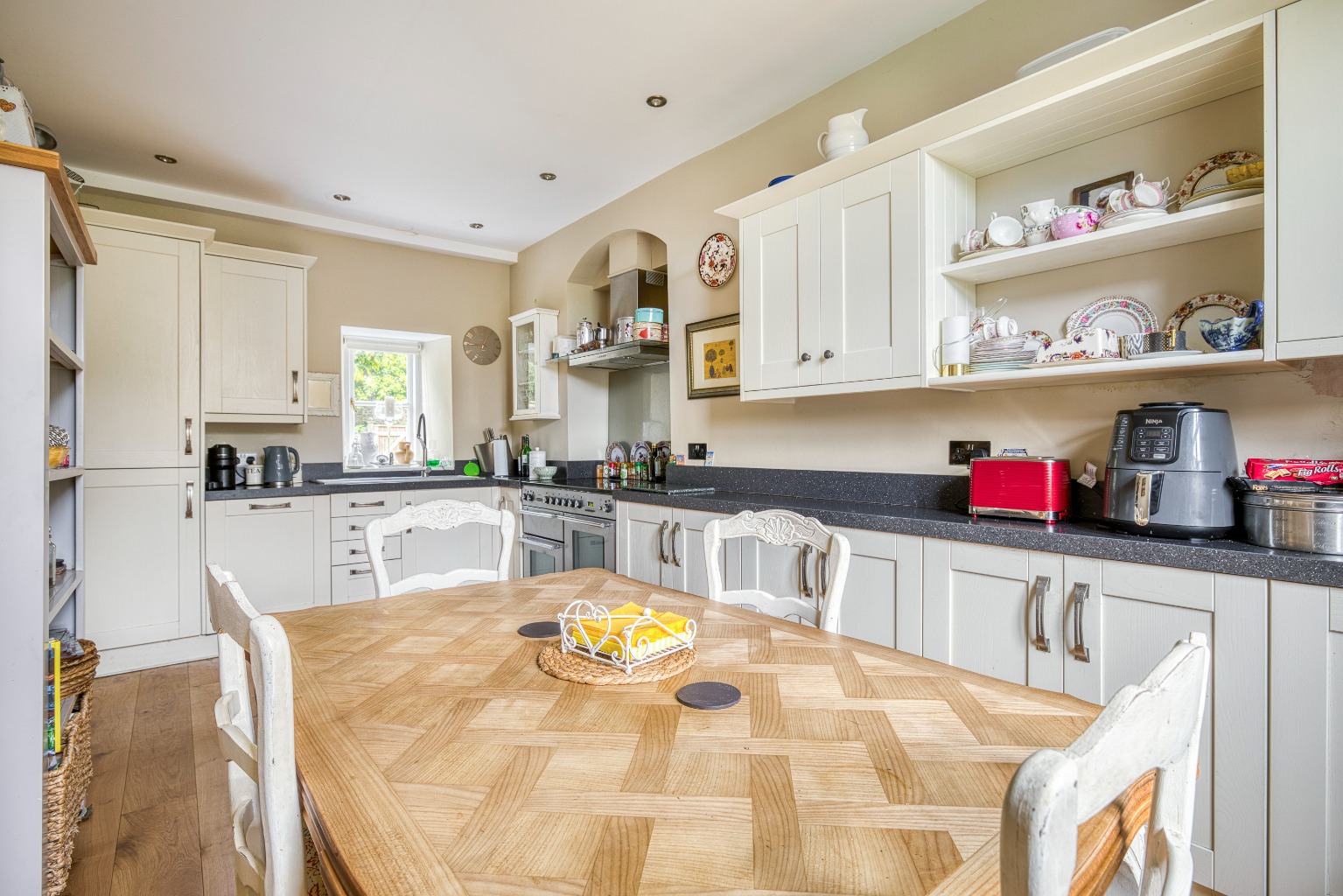 Spacious kitchen/dining room with fitted units, granite-effect worktops and integrated appliances