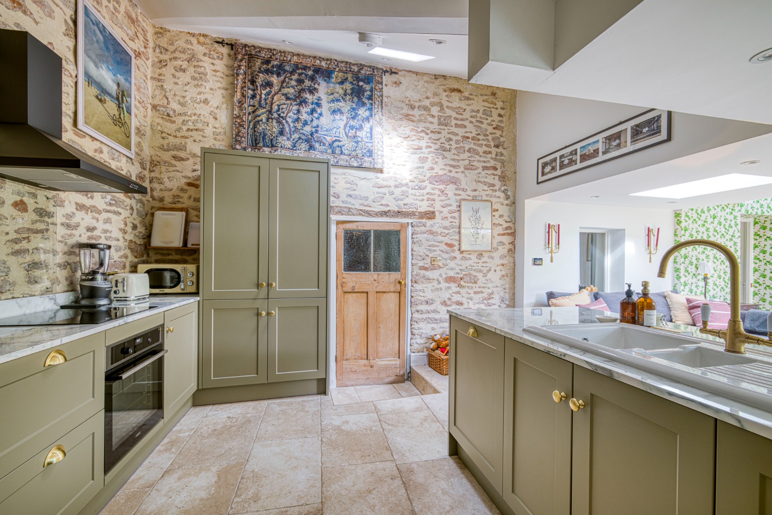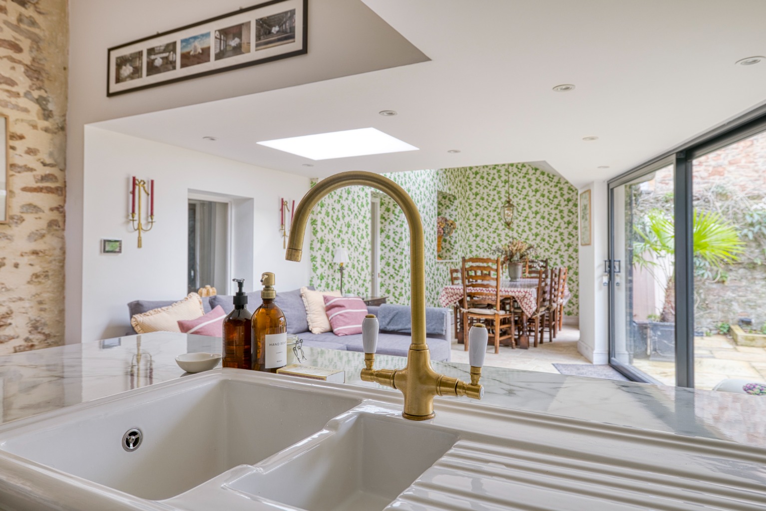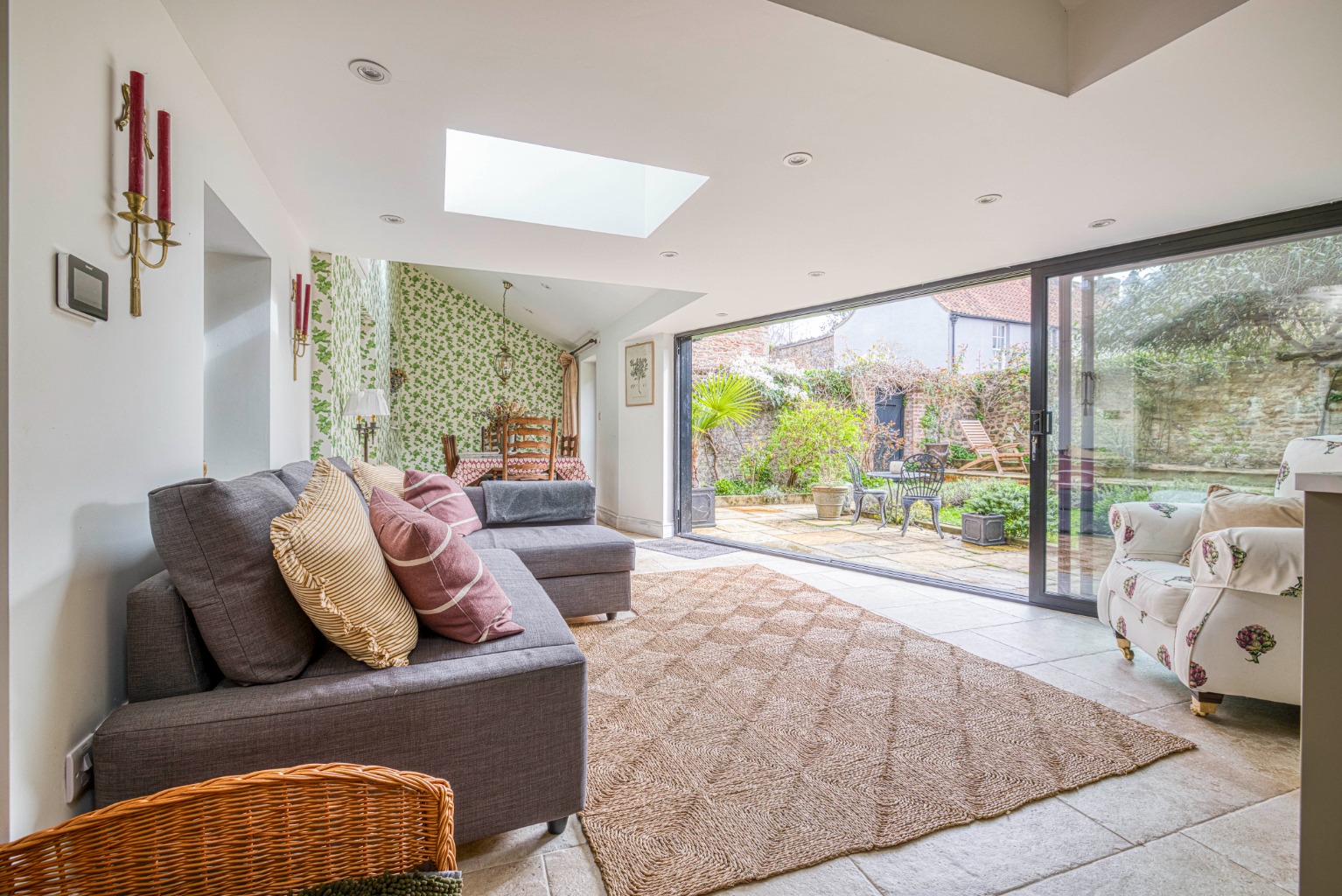 Open plan kitchen/dining room/living room with excellent views of the walled garden