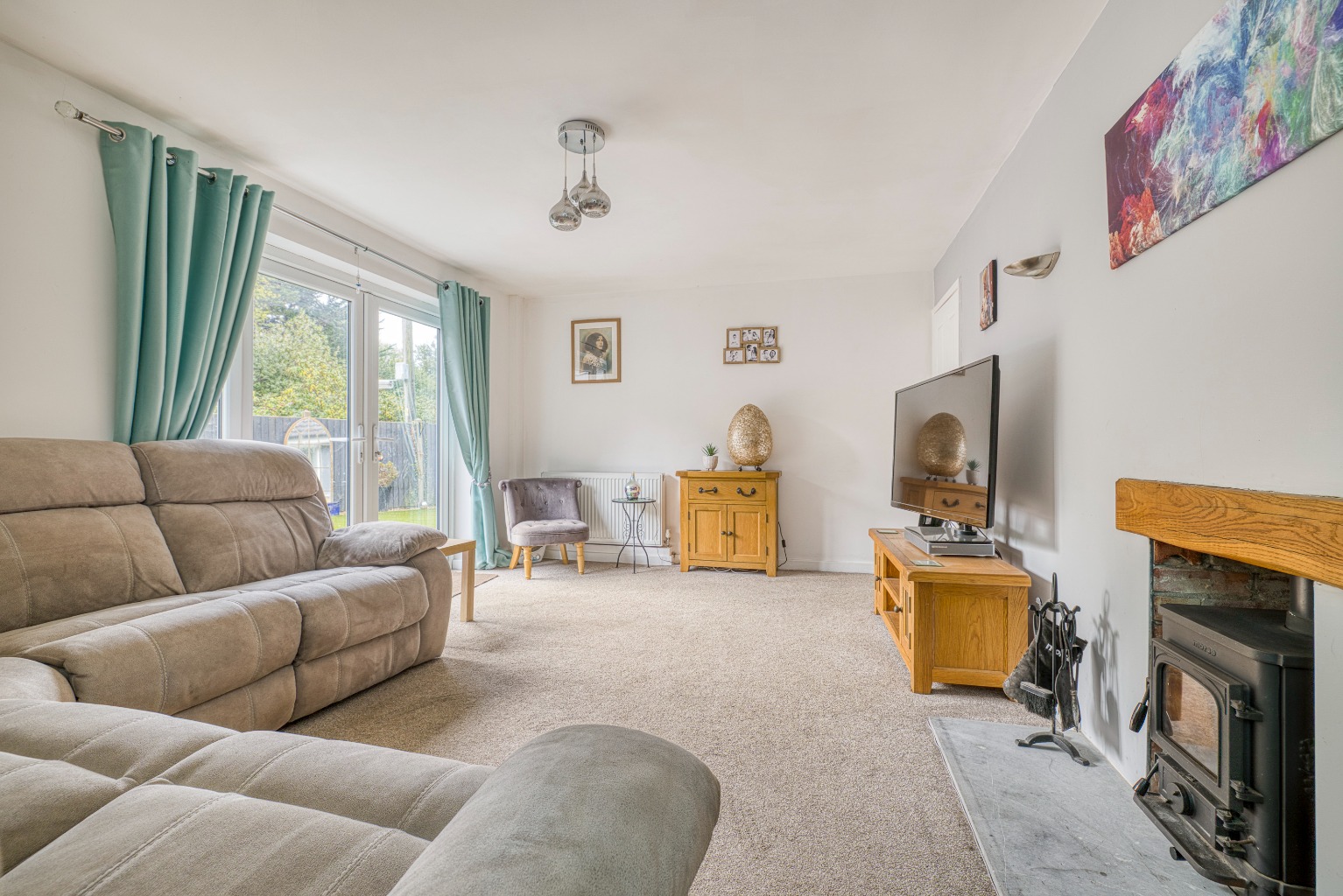 The property is entered via a welcoming entrance hall, with access to the principal rooms and a loft housing the central heating boiler. The sitting room is a generous space, centred around a ‘Morso’ wood-burning stove set on a Blue Lias stone hearth beneath a wooden lintel. Double doors open out to the rear decking, and internal double doors lead through to the conservatory. This light-filled room benefits from electric underfloor heating and lends itself to a variety of uses, with doors also leading into the kitchen and a useful storage area.