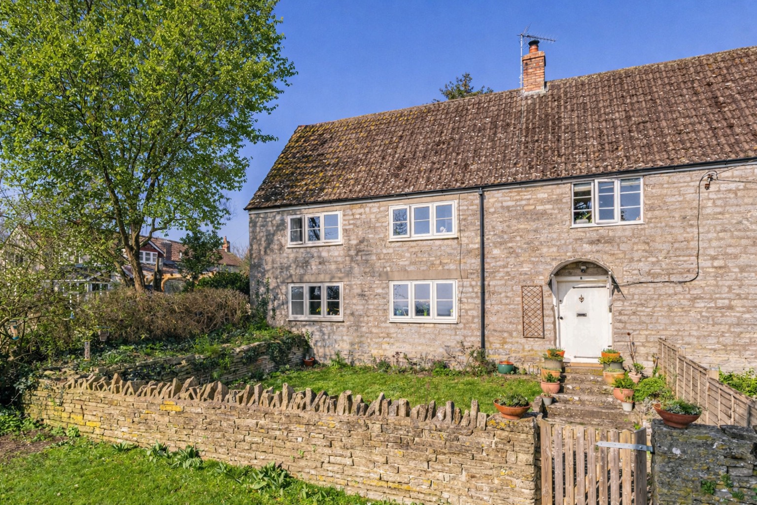 The property benefits from three double bedrooms, two reception rooms, attractive cottage gardens to the front and rear, together with off-road parking.