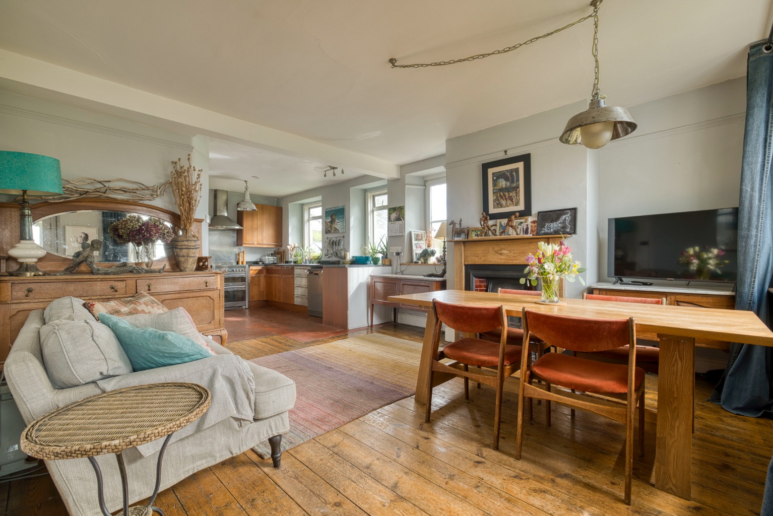 Open plan kitchen/living room with views