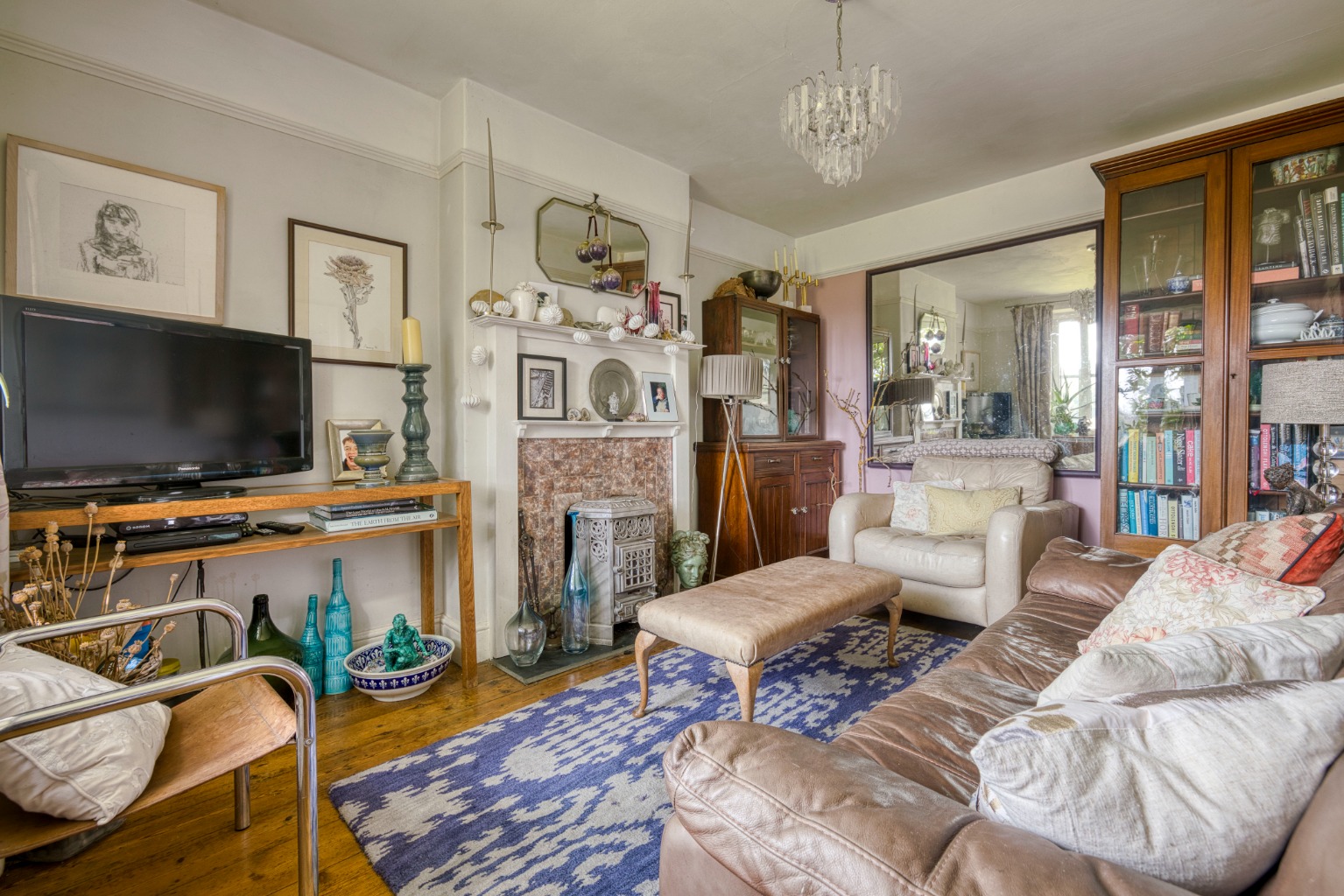 Sitting room with period fireplace and woodburner