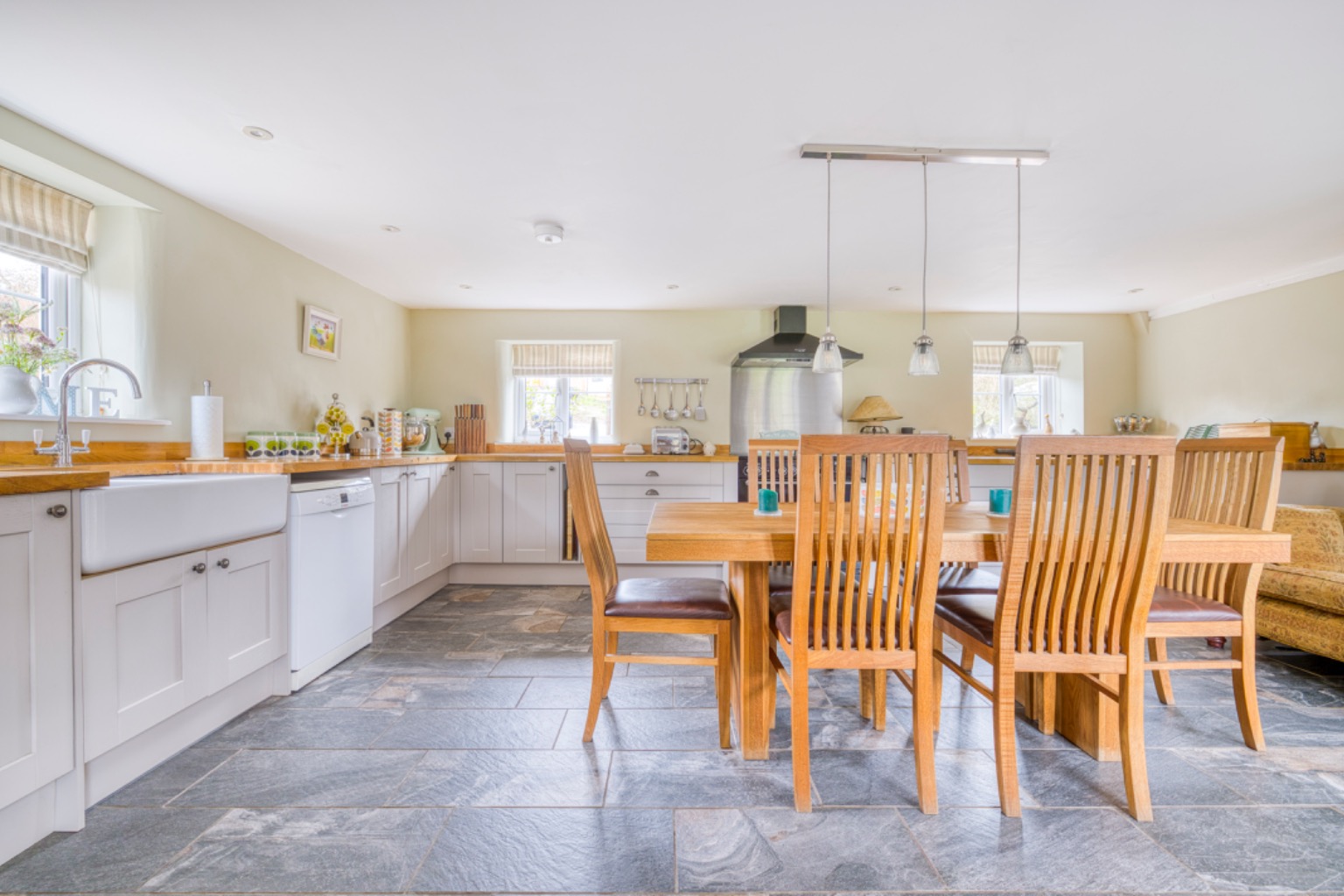 As with many period cottages, the principal day-to-day access is from the rear, leading into a welcoming lobby which opens directly into a stunning, farmhouse-style open plan kitchen/dining room. This impressive space forms the heart of the home and is ideal for both everyday living and entertaining.