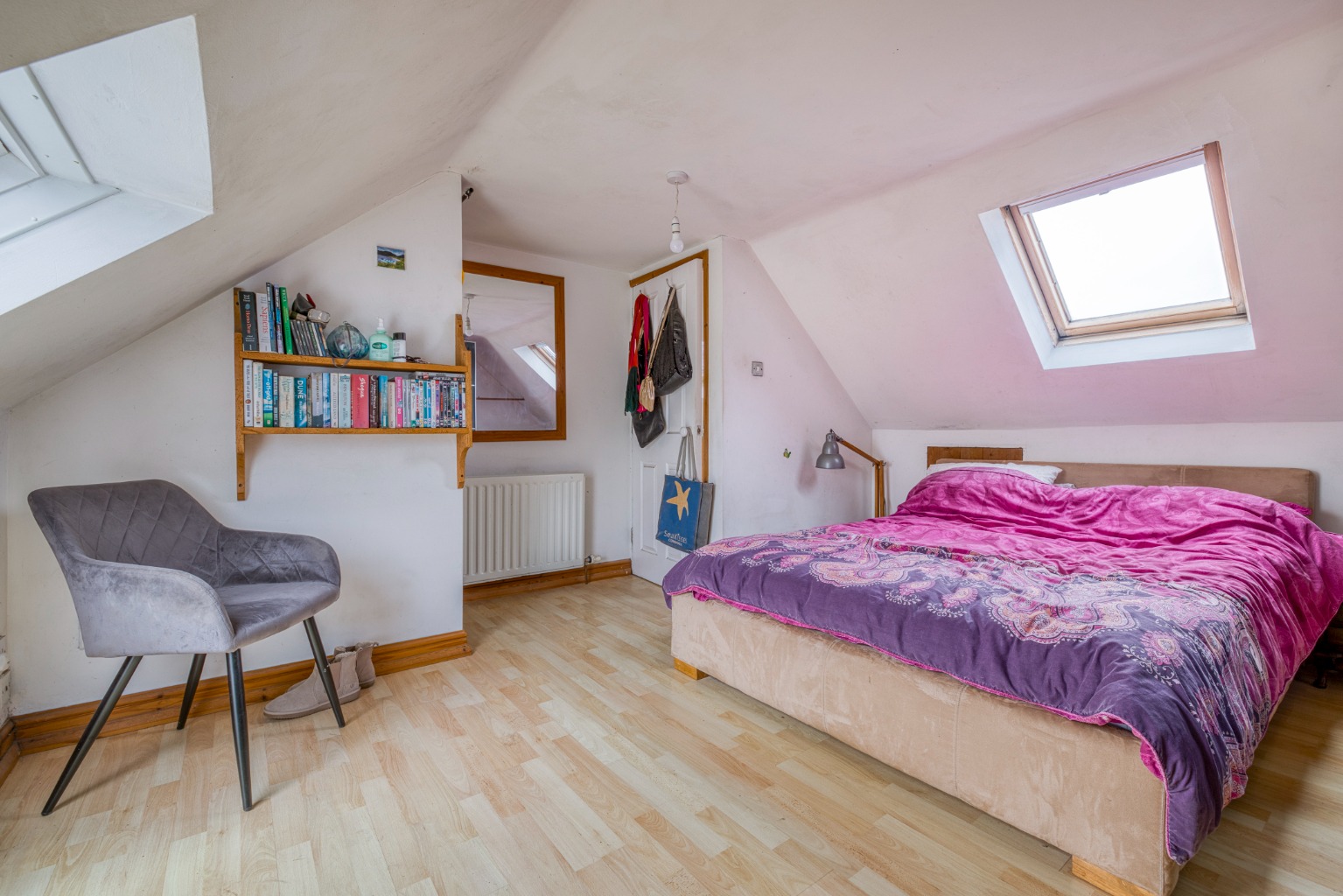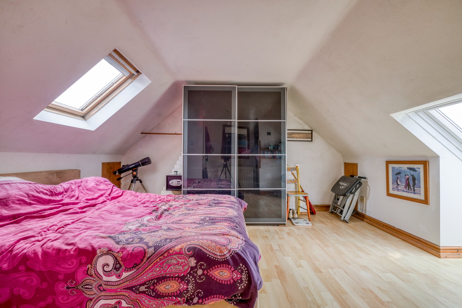 On the first floor, there are two double bedrooms and a single room. Two of the rooms enjoy superb views, and one features an ornate fireplace. The attic has been converted to provide a loft room, which could be utilised in numerous ways. The loft room has ample eaves storage, as well as a loo and basin.