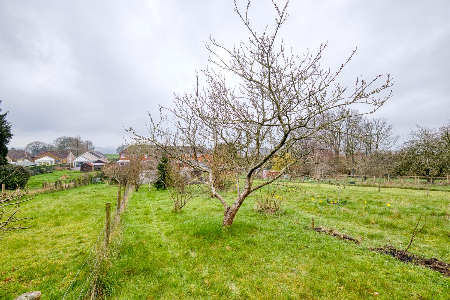 A lawned front garden with a concrete path leads to the front door, which is sheltered by a stone hood. This, in turn, leads to an entrance hall with the staircase rising to the first floor, directly ahead. The sitting room on the right-hand side enjoys wood-effect floorboards and a fireplace with an inset wood burner. The westerly facing window enjoys excellent views too.