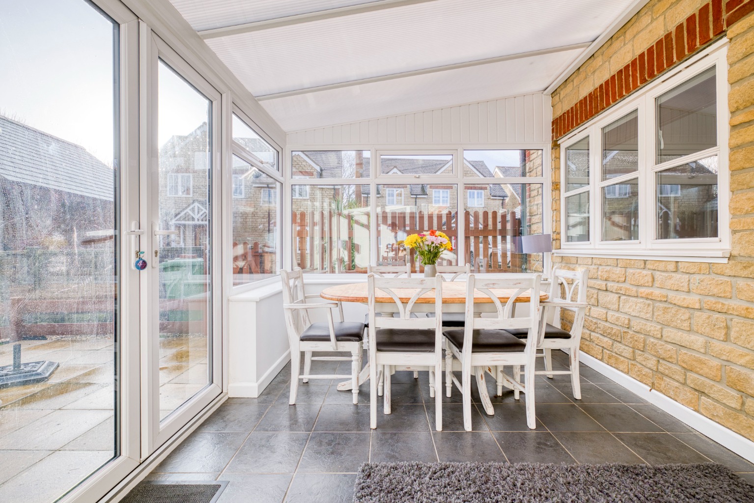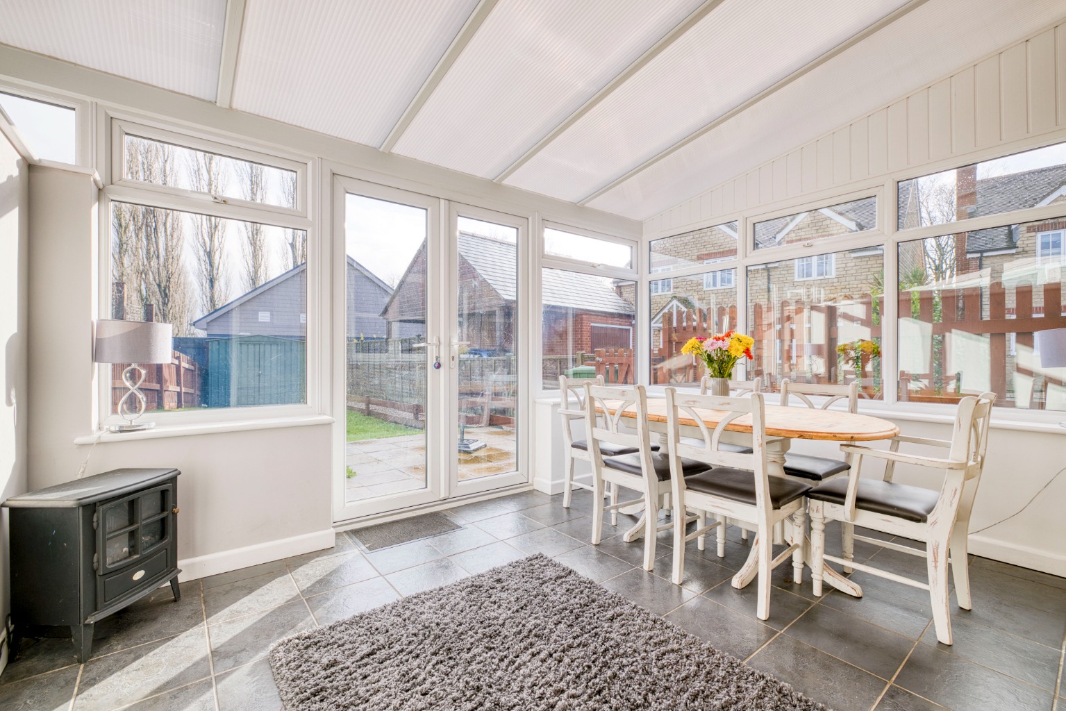 The sitting room sits at the rear of the house and benefits from wood-effect floorboards and a door opening into a large conservatory. The conservatory provides a useful extra reception room and has French doors leading out into the garden. Completing the ground floor, there is a cloakroom with a loo.