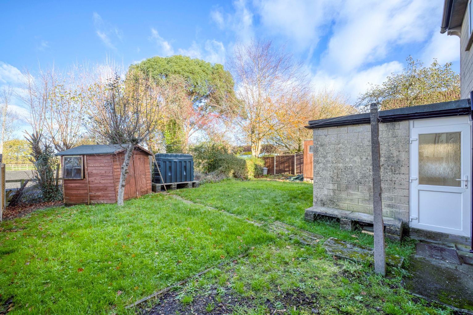 There is ample driveway parking, a private rear garden and a useful garden shed for storage.