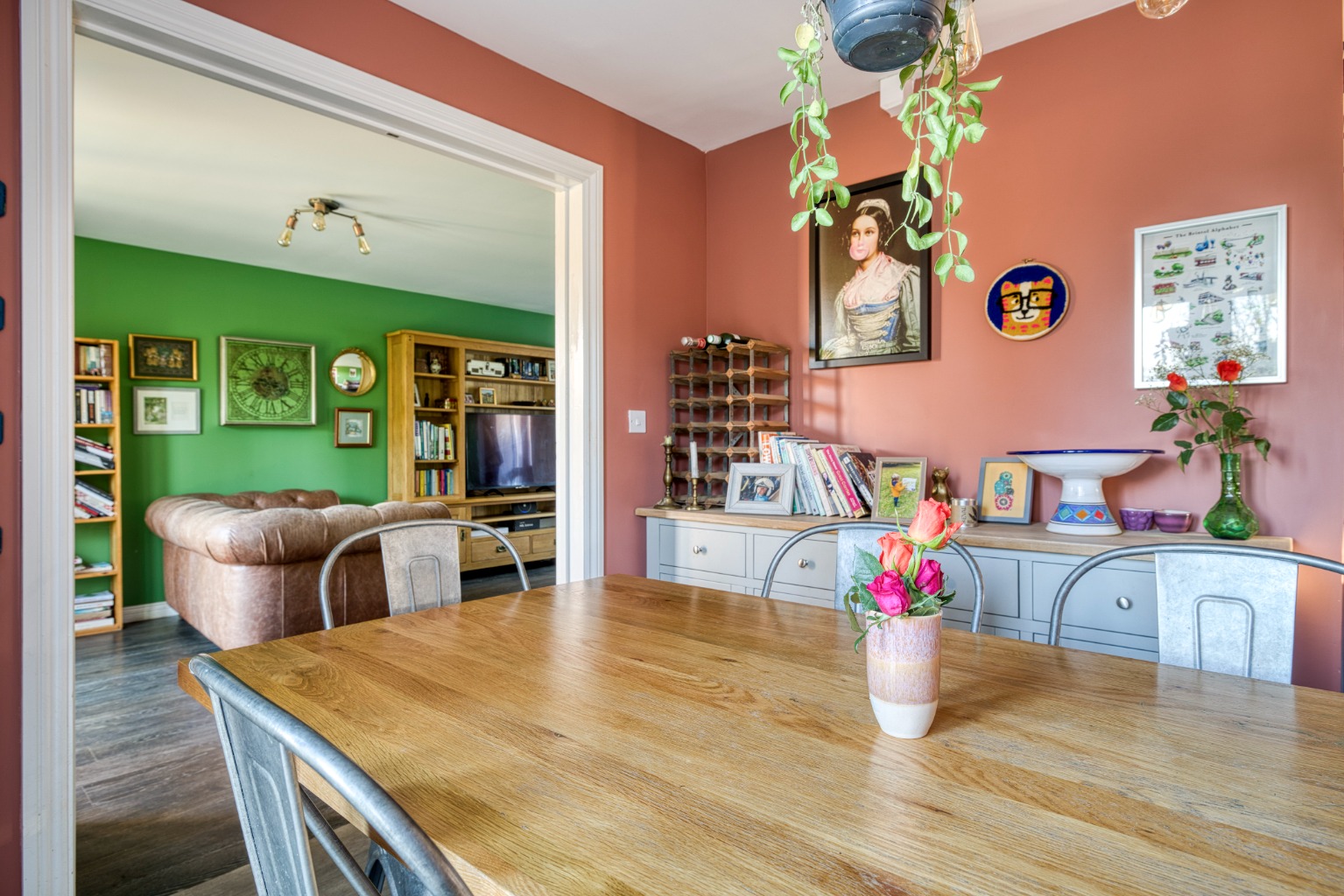 The property has well-arranged, family-oriented accommodation including an entrance hall, sitting room, kitchen/dining room, utility, cloakroom, and four double bedrooms with three bathrooms set across three floors.