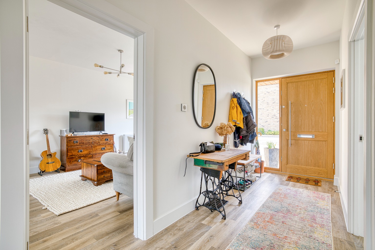 Finished to an exceptional standard throughout, this impressive family home combines modern convenience with elegant design. Benefiting from gas central heating, Rational aluminium double glazing, and a large tandem garage with driveway parking, it offers practical yet stylish living.