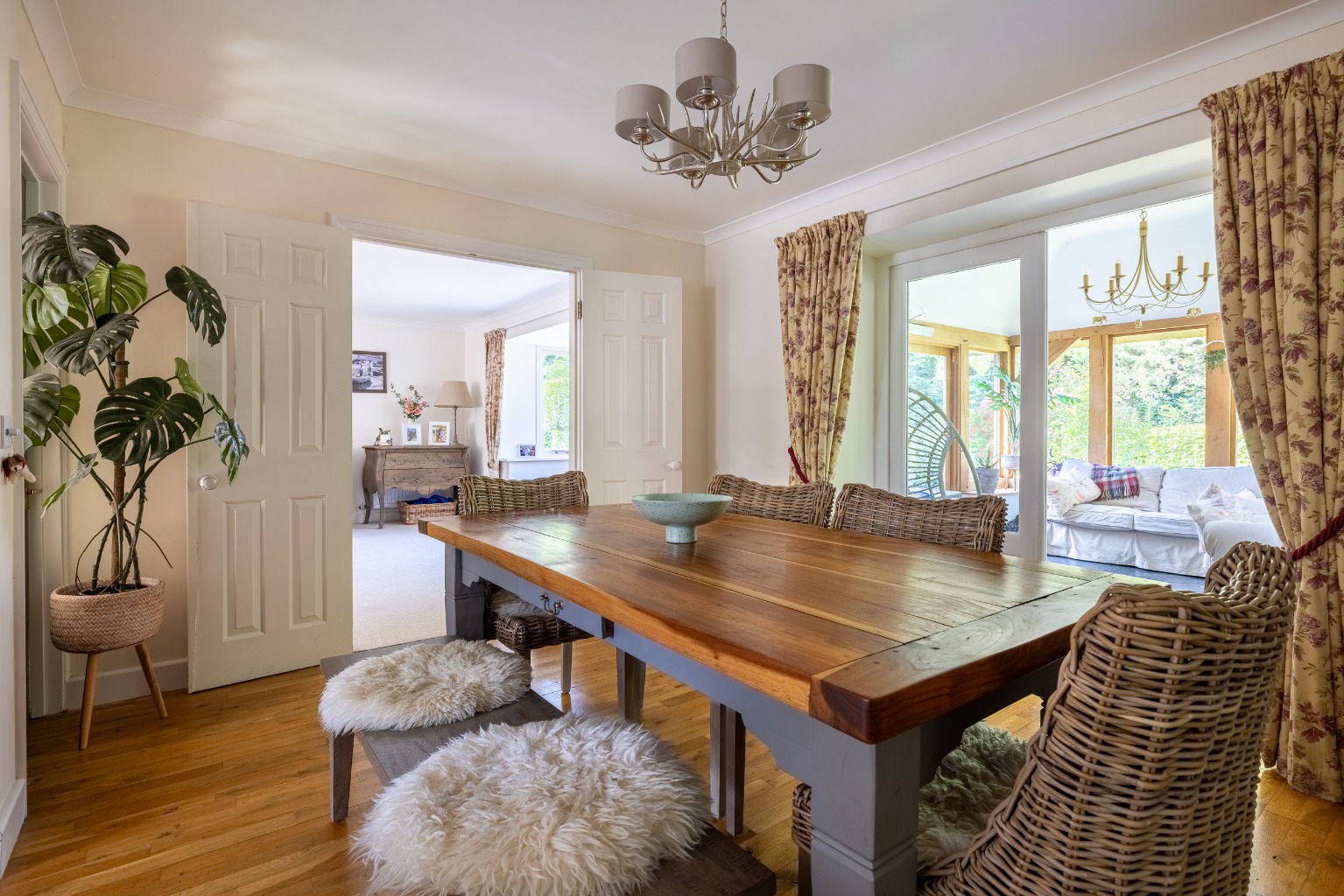 Plenty of character and charm, comfortable, well designed and appointed accommodation including an entrance hall, cloakroom, sitting room, dining room, garden room, study, kitchen, utility room, 4 bedrooms, 2 bathrooms and 2 garages.