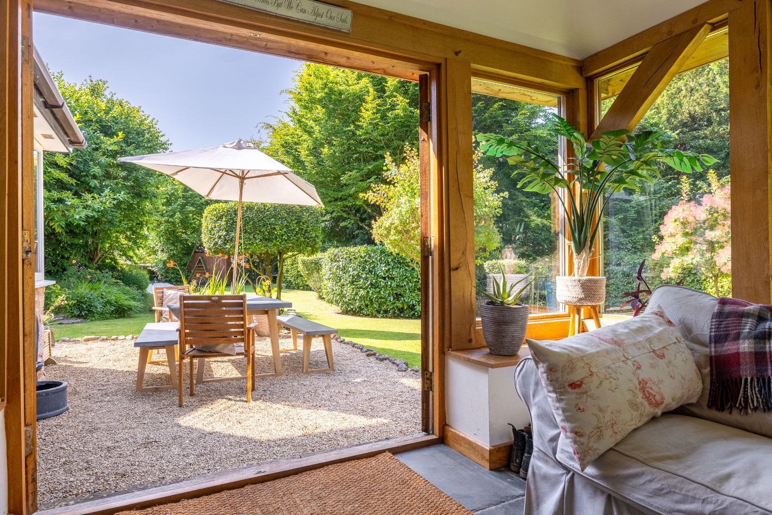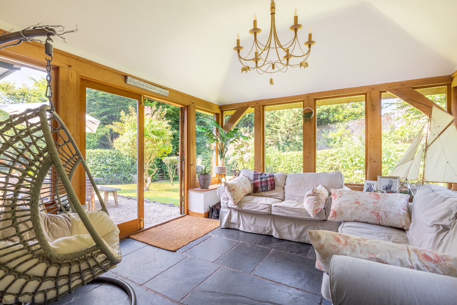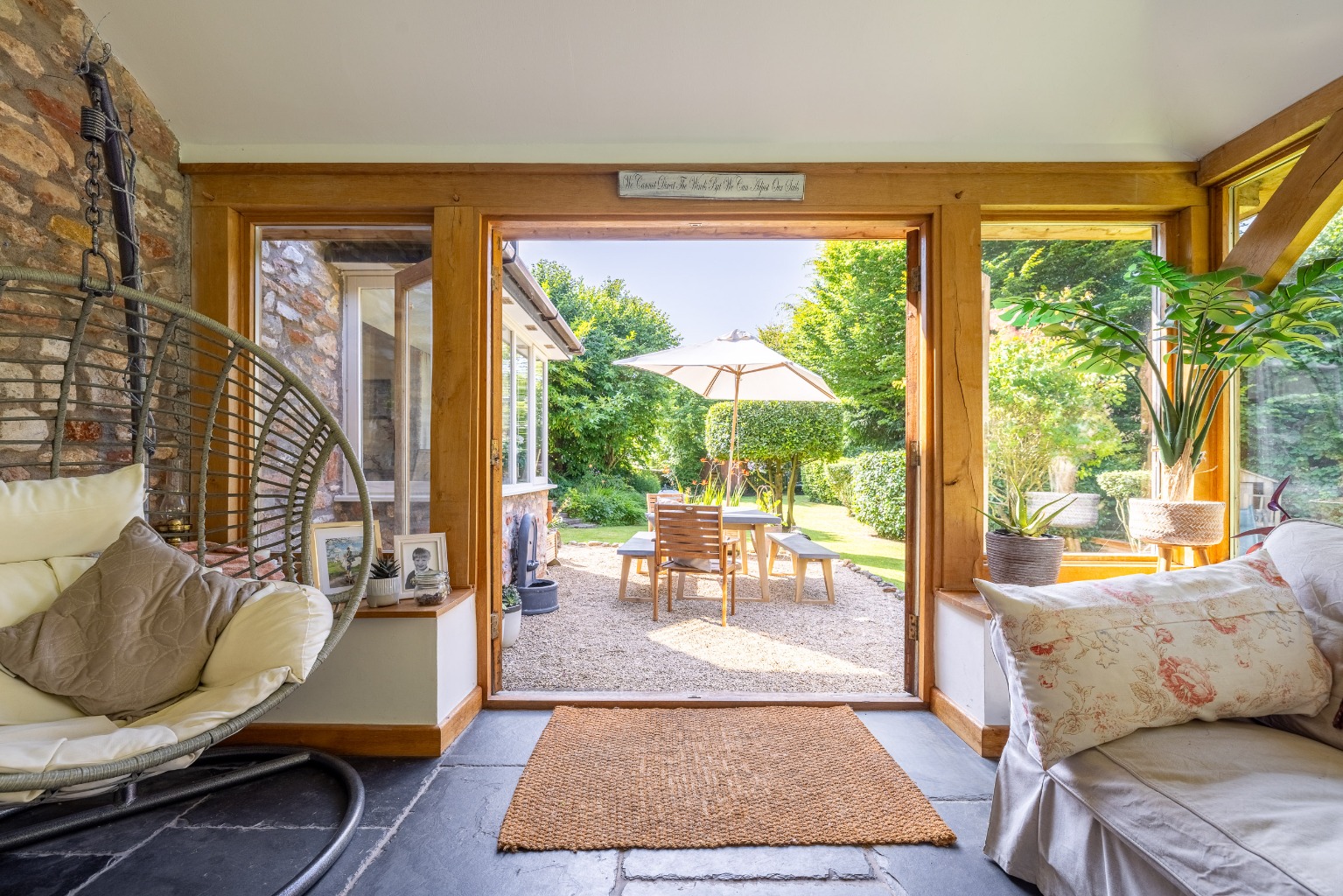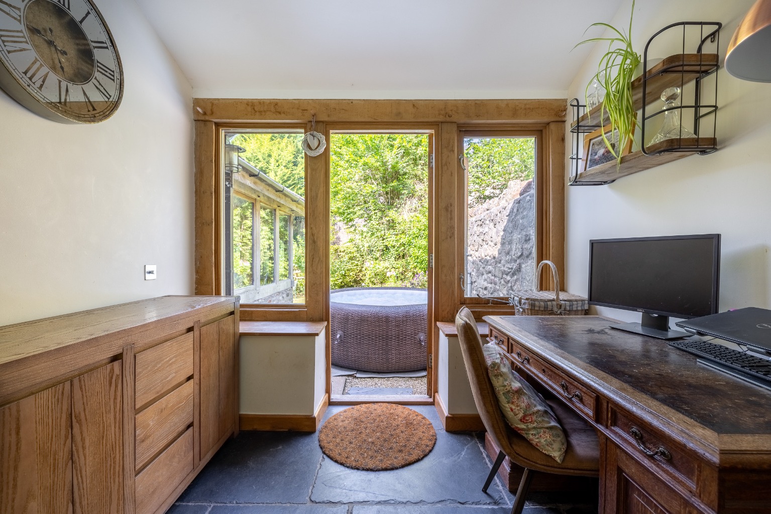 Internally stone flooring, solid oak timberwork and French doors to the garden, all combine and create a charming and comfortable home of considerable style.
