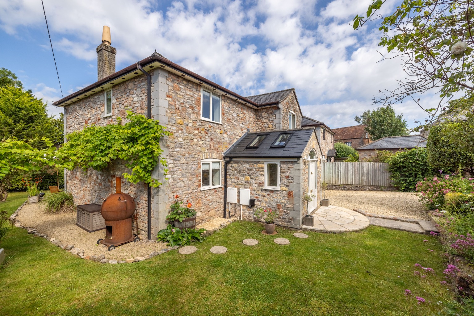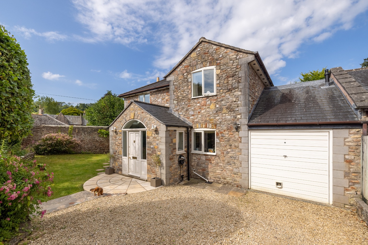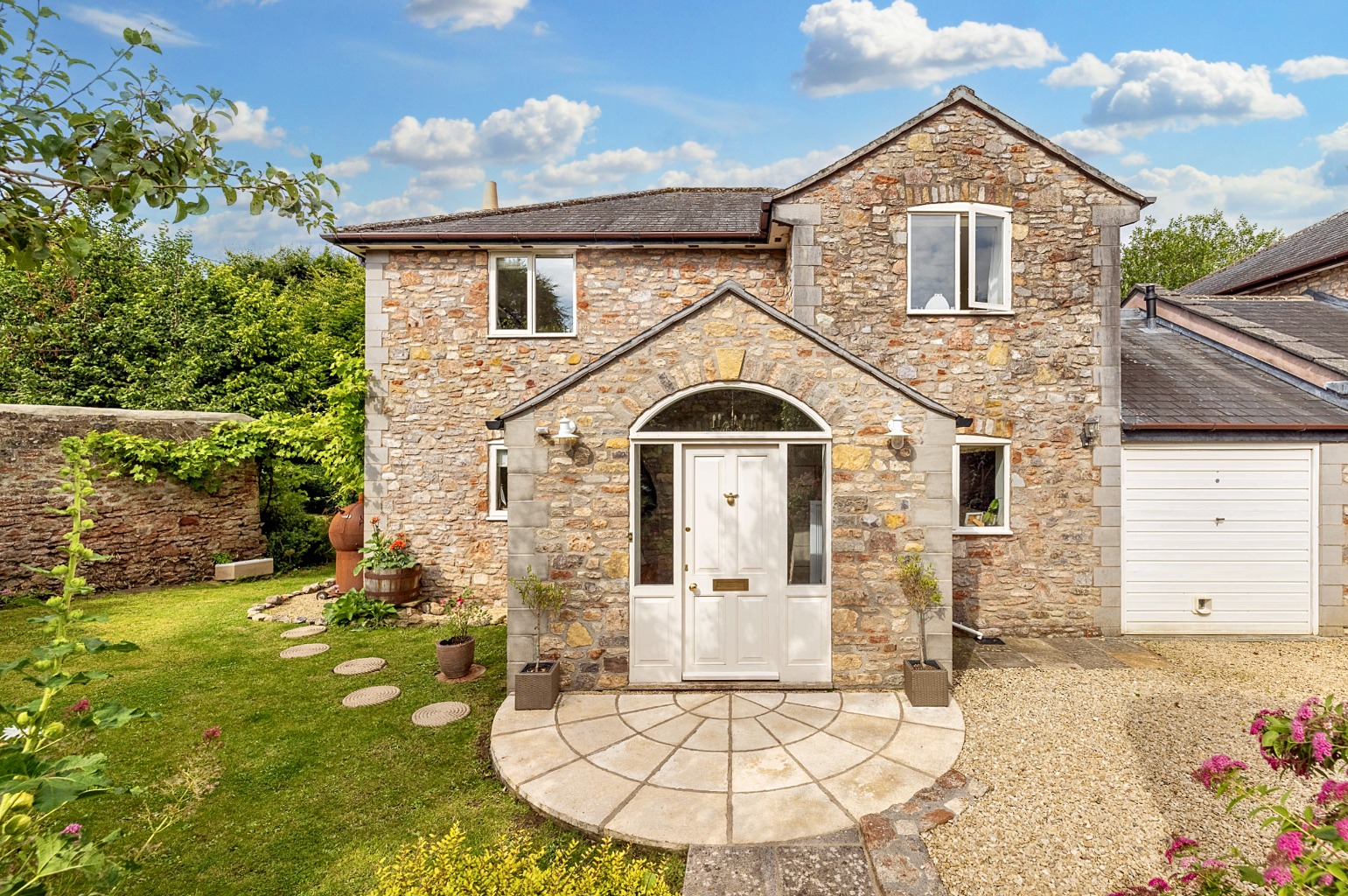 No. 4 stands within its established gardens and is a handsome house with stone elevations, a slated roof and a recently extended pretty front porch.