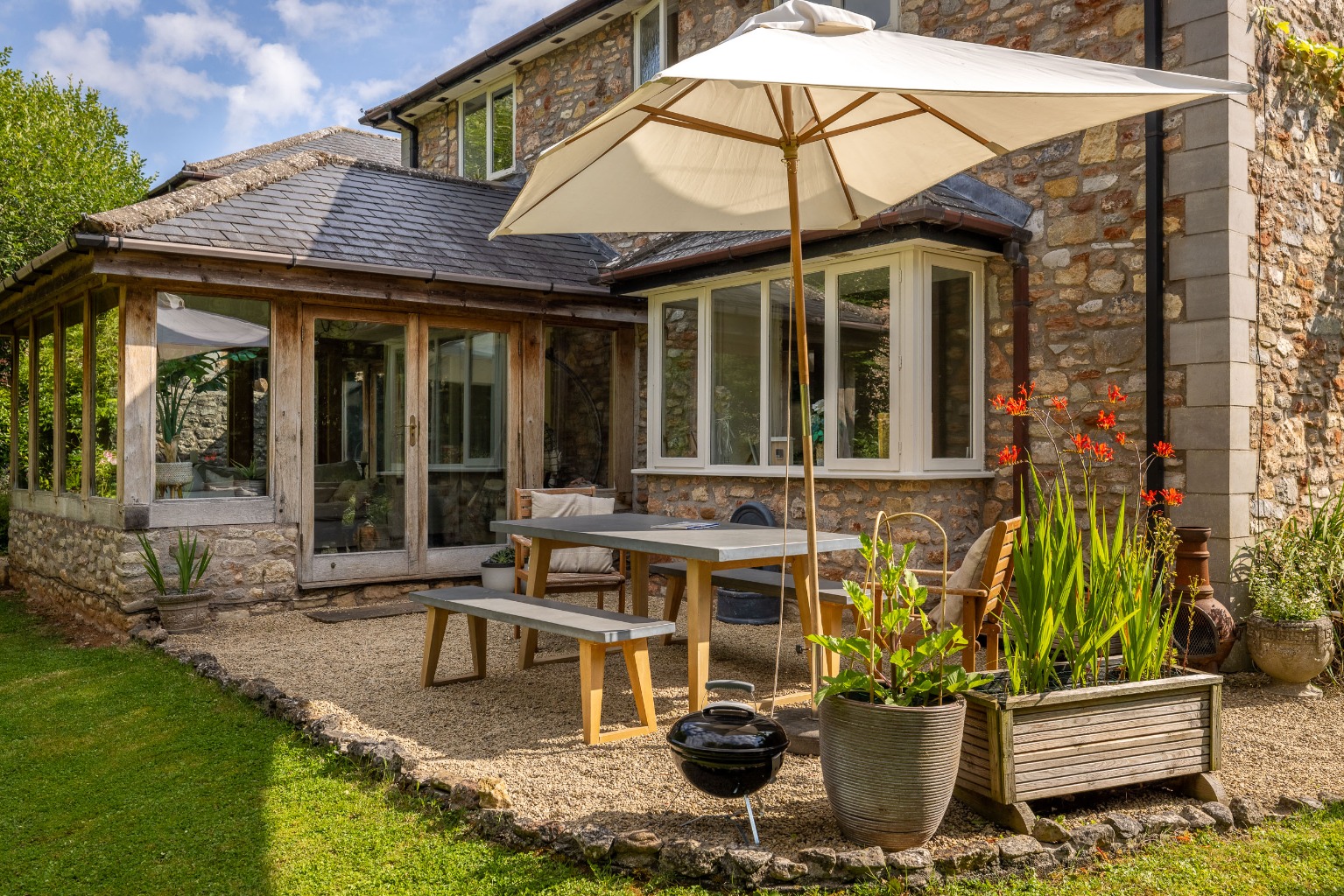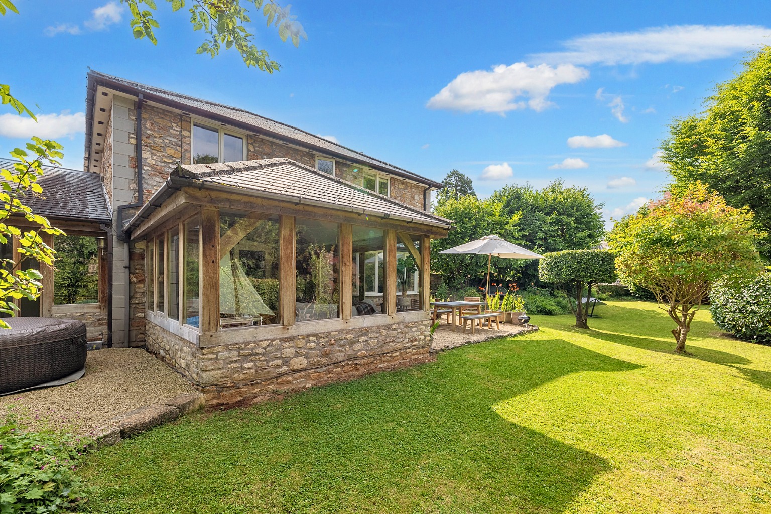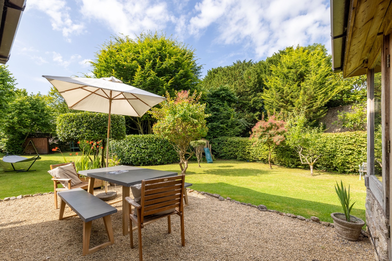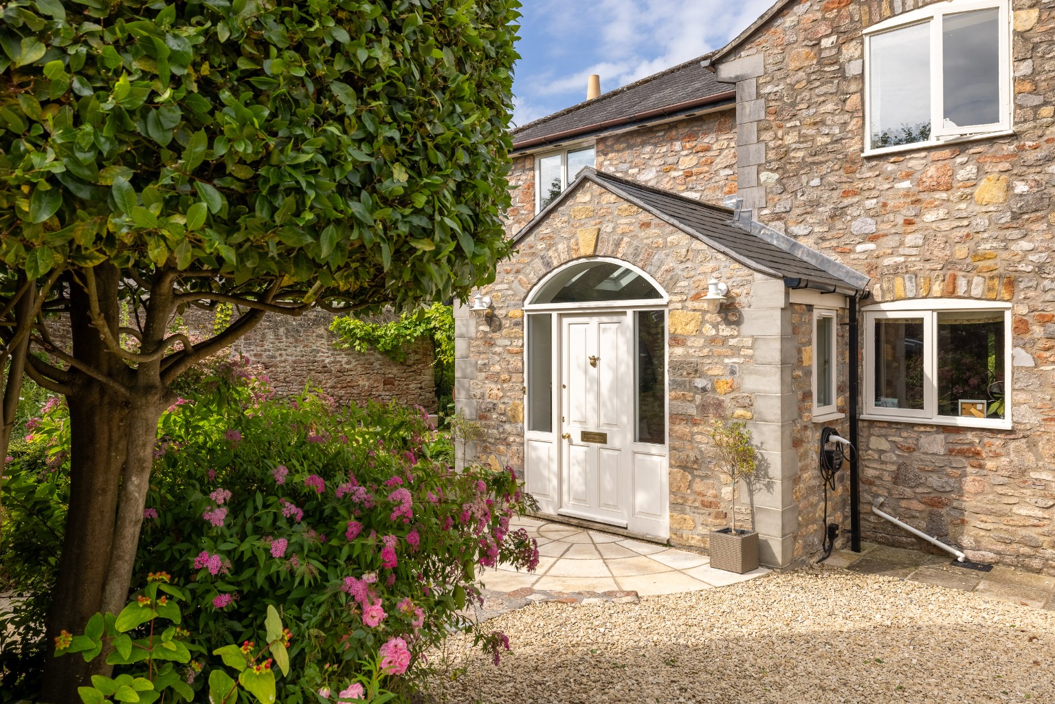 No. 4 stands within its established gardens and is a handsome house with stone elevations, a slated roof and a recently extended pretty front porch.
