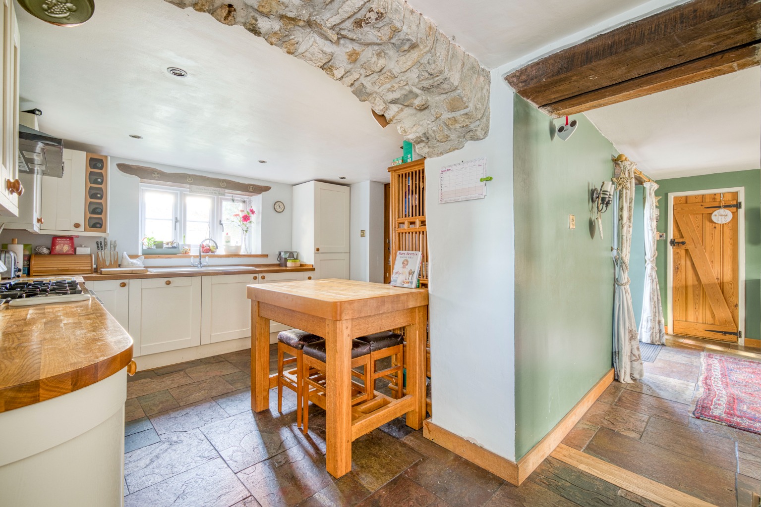 The front door leads to an inner hall with the staircase directly ahead and a reception room to either side. On the right-hand side, the sitting room is a spacious family room with a Jetmaster fire and a dual aspect. Opposite, there is a dining room which has lovely exposed stonework, French doors leading out to the garden and another Jetmaster fire. In addition, there is a large storage cupboard beneath the stairs which houses the gas-fired central heating boiler.