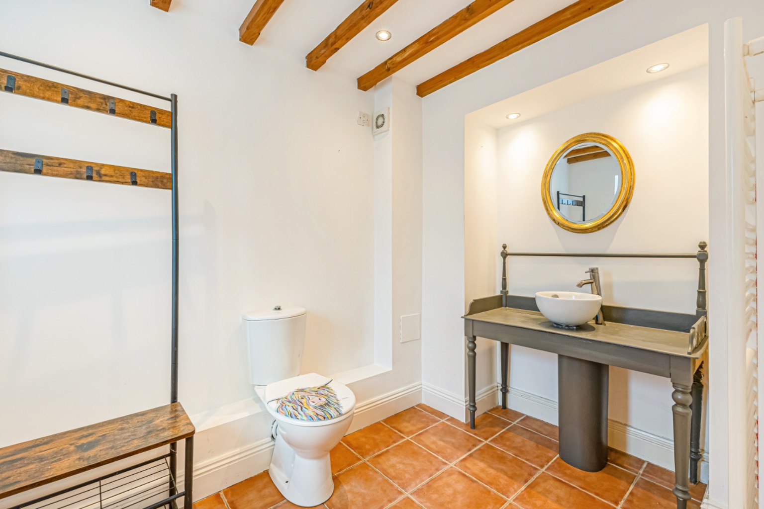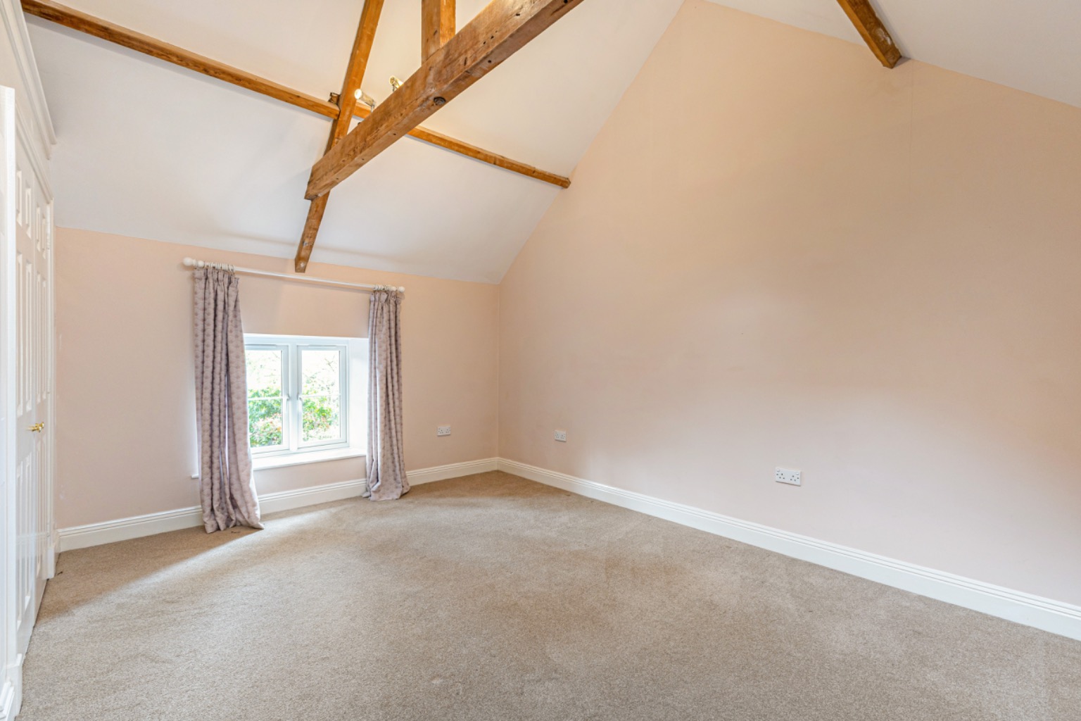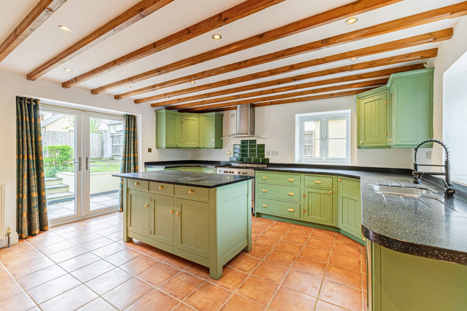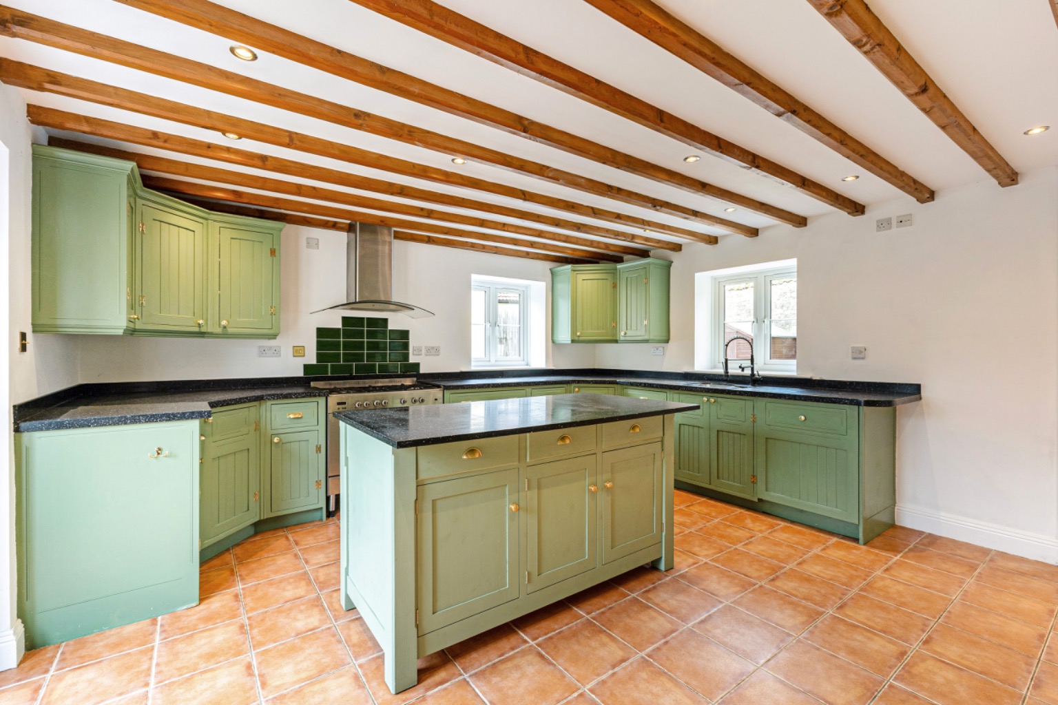 Entering via a solid wooden door which opens into a spacious reception hall with tiled flooring, there are exposed ceiling timbers and a staircase rising to the first floor, with useful under-stairs storage.