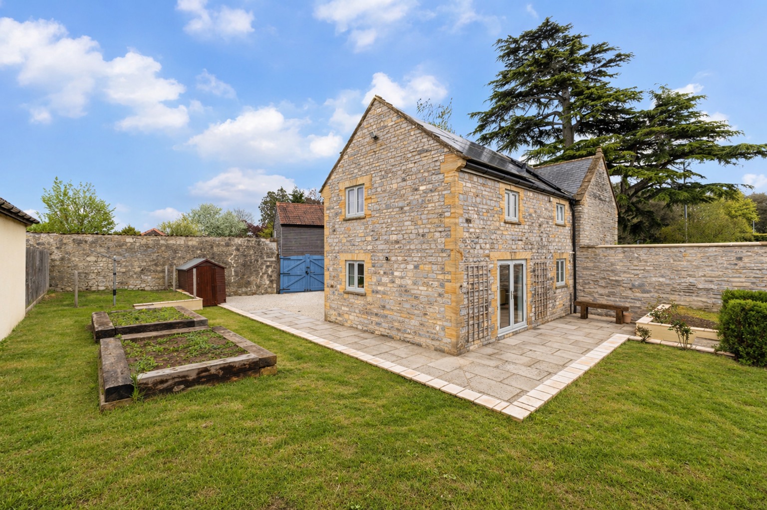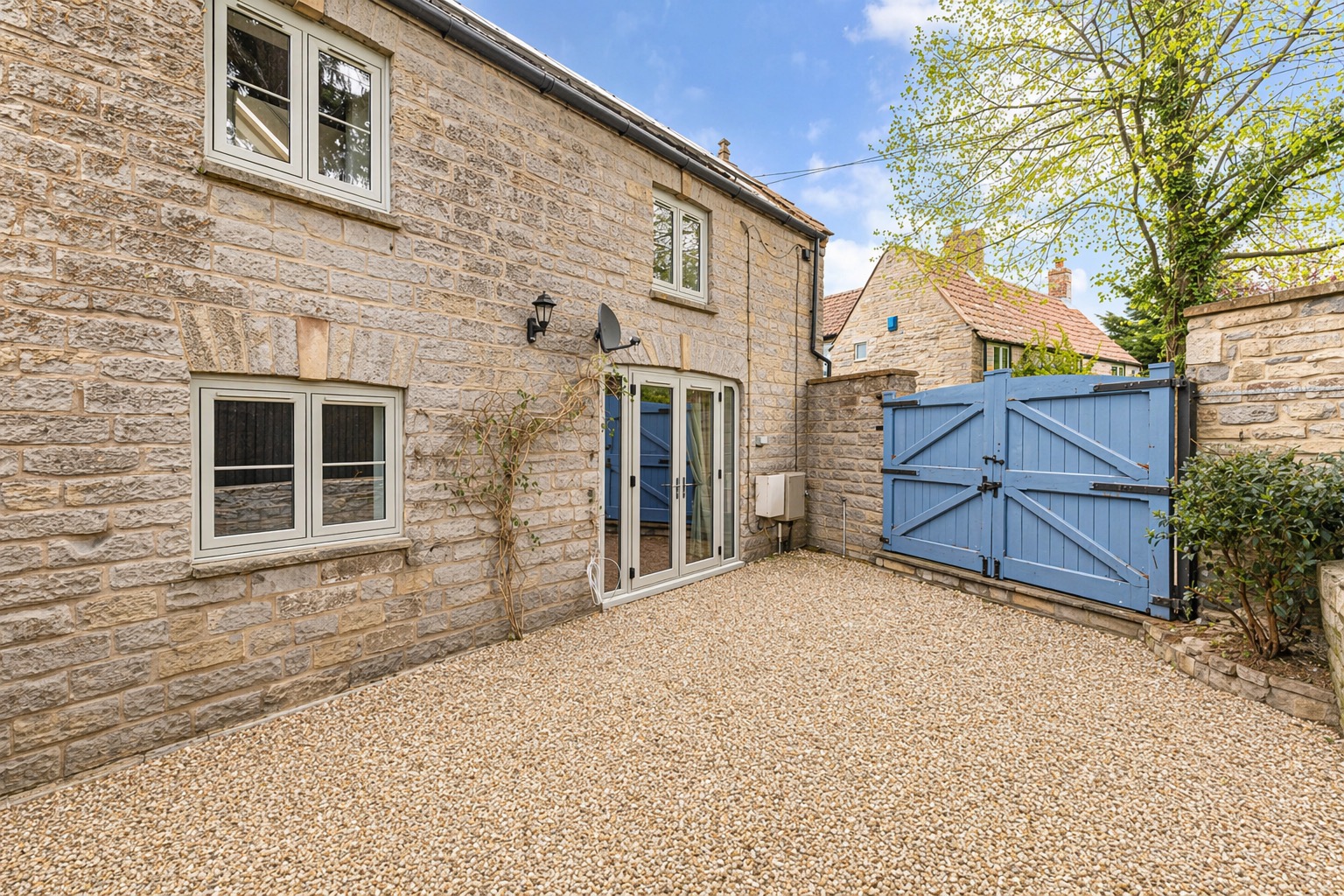 Outside, enclosed gardens to each side, as well as ample gated parking for several vehicles.