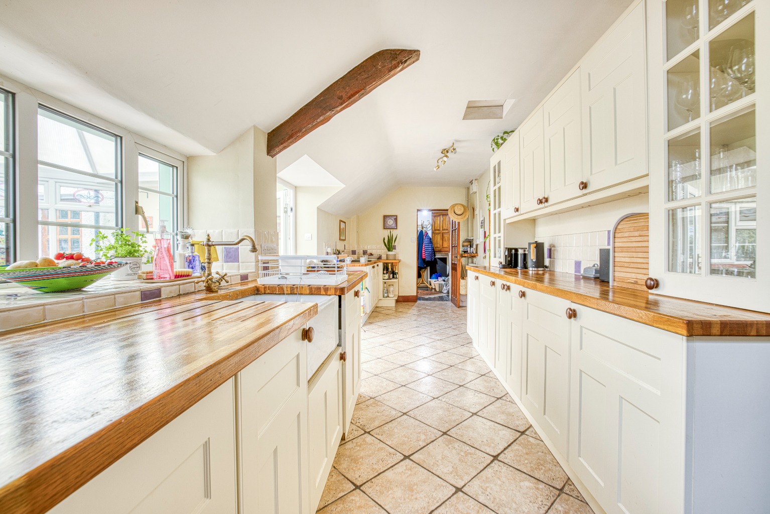 Large farmhouse kitchen and conservatory