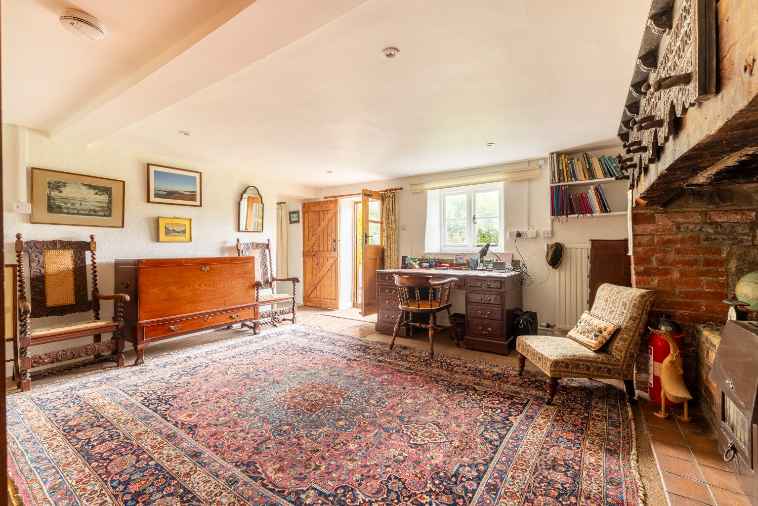 The property offers around 2,611 sq. ft. (243 sq. m.) of well-proportioned accommodation, brimming with character including exposed beams, inglenook fireplaces and wood-burning stoves. Inside, the layout includes three reception rooms, a large kitchen with pantry, utility, cloakroom, five bedrooms and two shower rooms.
