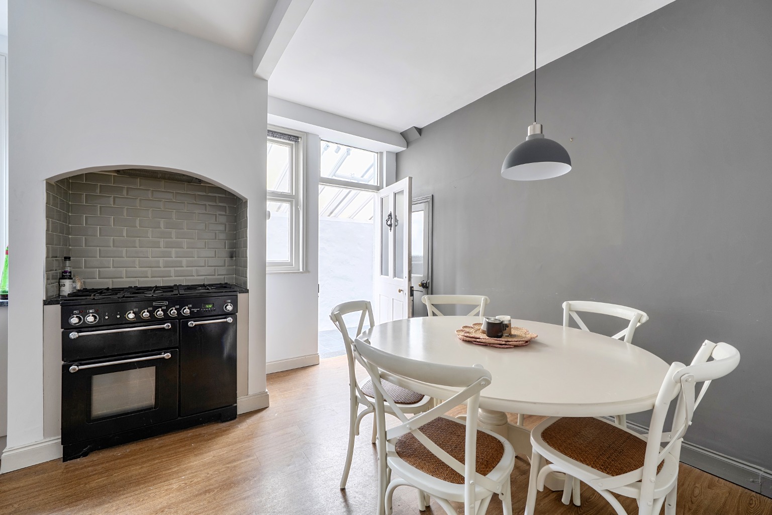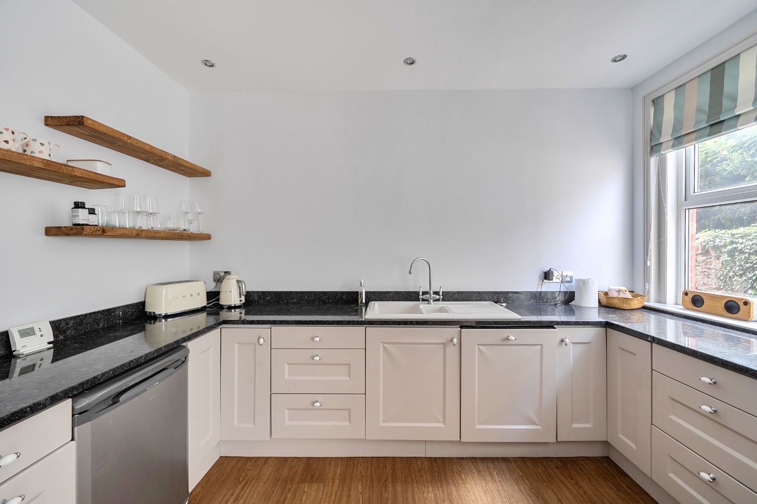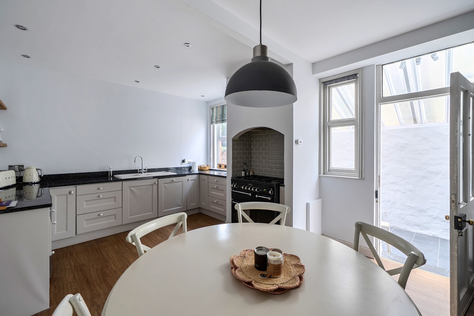 The well-appointed kitchen in the centre of the house, with granite worktops, shaker-style units, integrated appliances, a range cooker within an inglenook and a useful pantry. There is a door leading to the side return leading to a practical utility room with cloakroom with access to both the front and rear - particularly useful for families and those with pets.