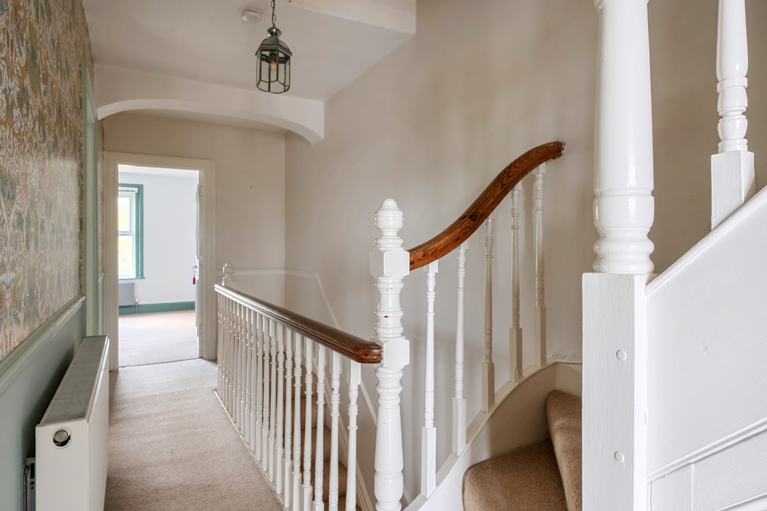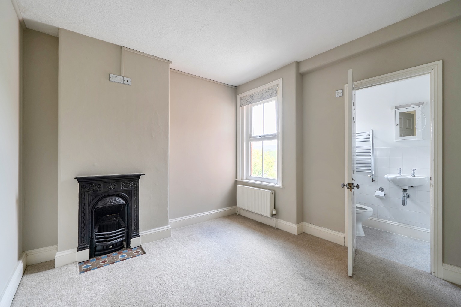 The first floor is arranged around a spacious central landing. The spacious main bedroom is at the front of the house with large bay window and original fireplace. The family bathroom is adjacent to this room with separate shower and bath. There are two further double bedrooms both with ensuite showers.