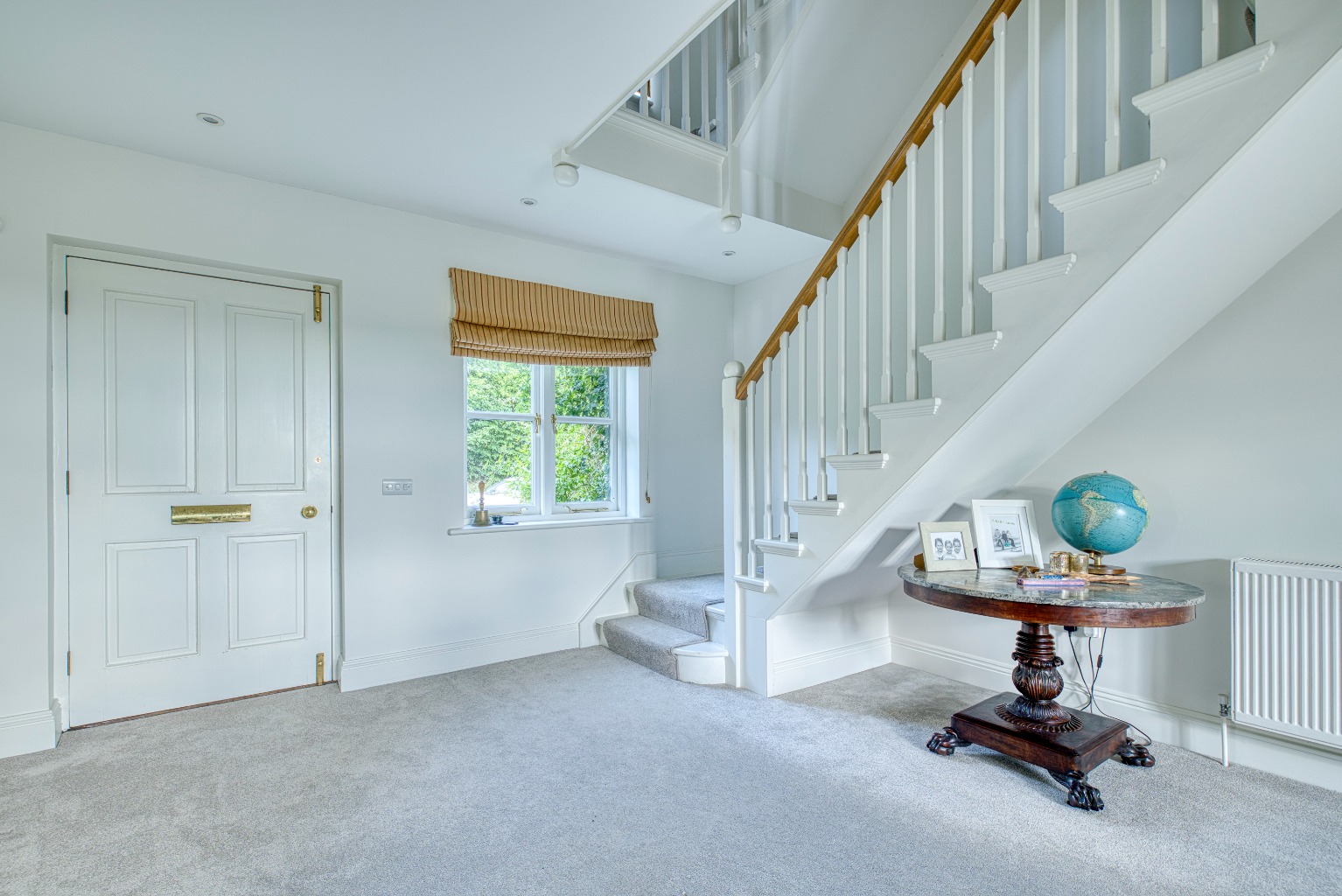 Between the sitting room and kitchen, there is a capacious reception hall which could easily be utilised as a formal dining room if desired. The stairs lead up from here to the first-floor landing.