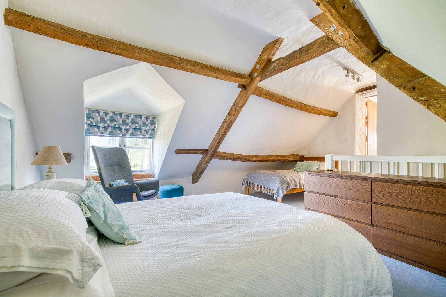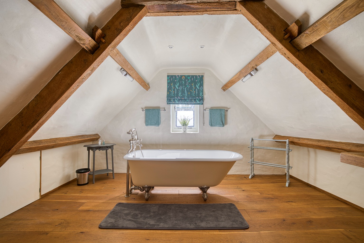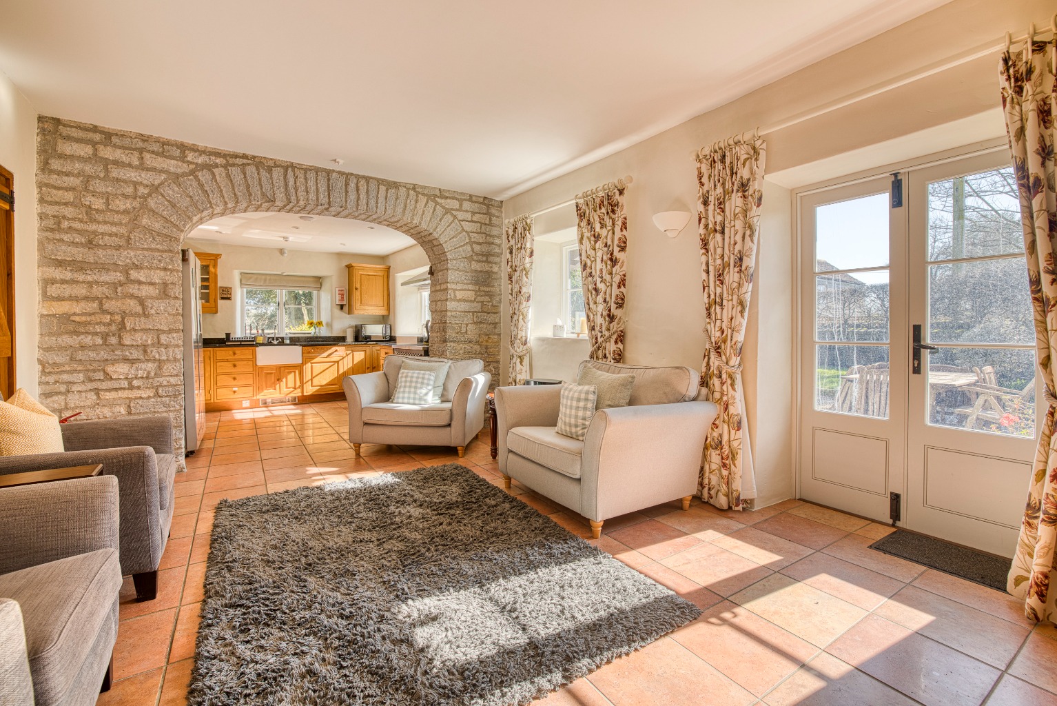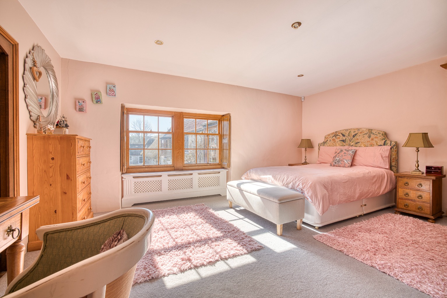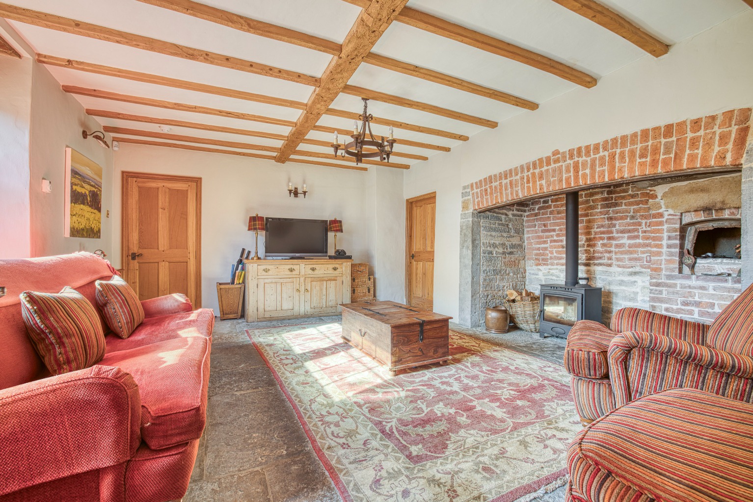 The formal dining room features underfloor heated flagstone flooring and a wine store nook. This leads through to the snug, also conveniently heated underfloor beneath its original flagstones, providing a cosy retreat with its own wood-fired stove and exposed beams.