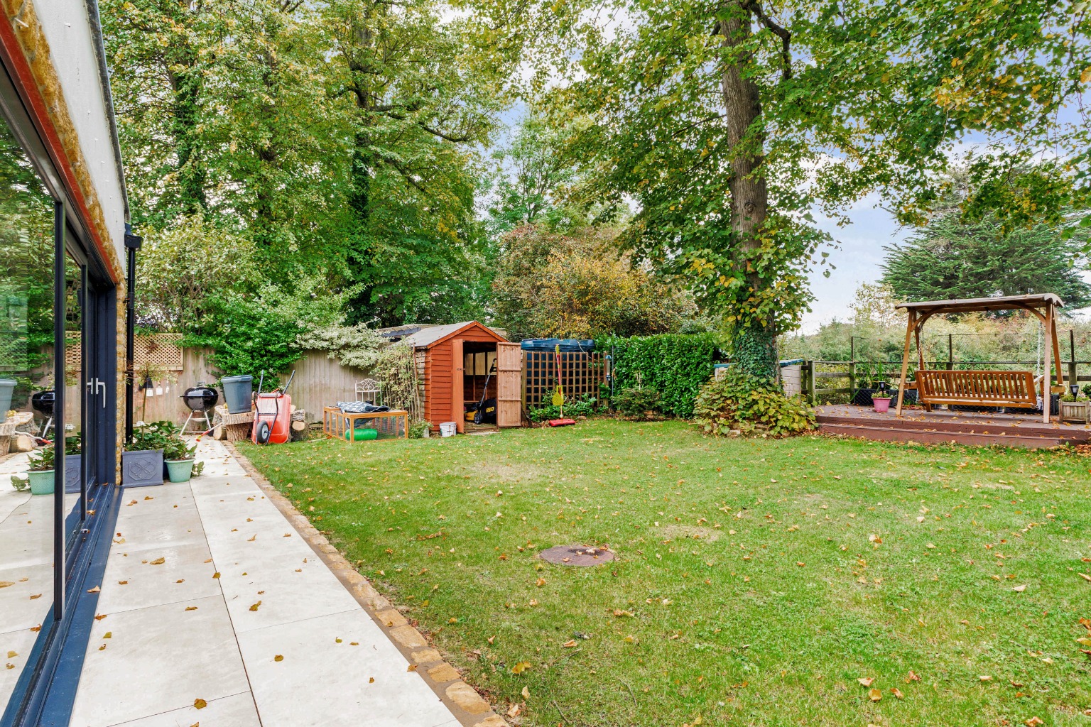 Outside, there is parking, a garage and a large, fully enclosed and mature rear garden backing onto fields.