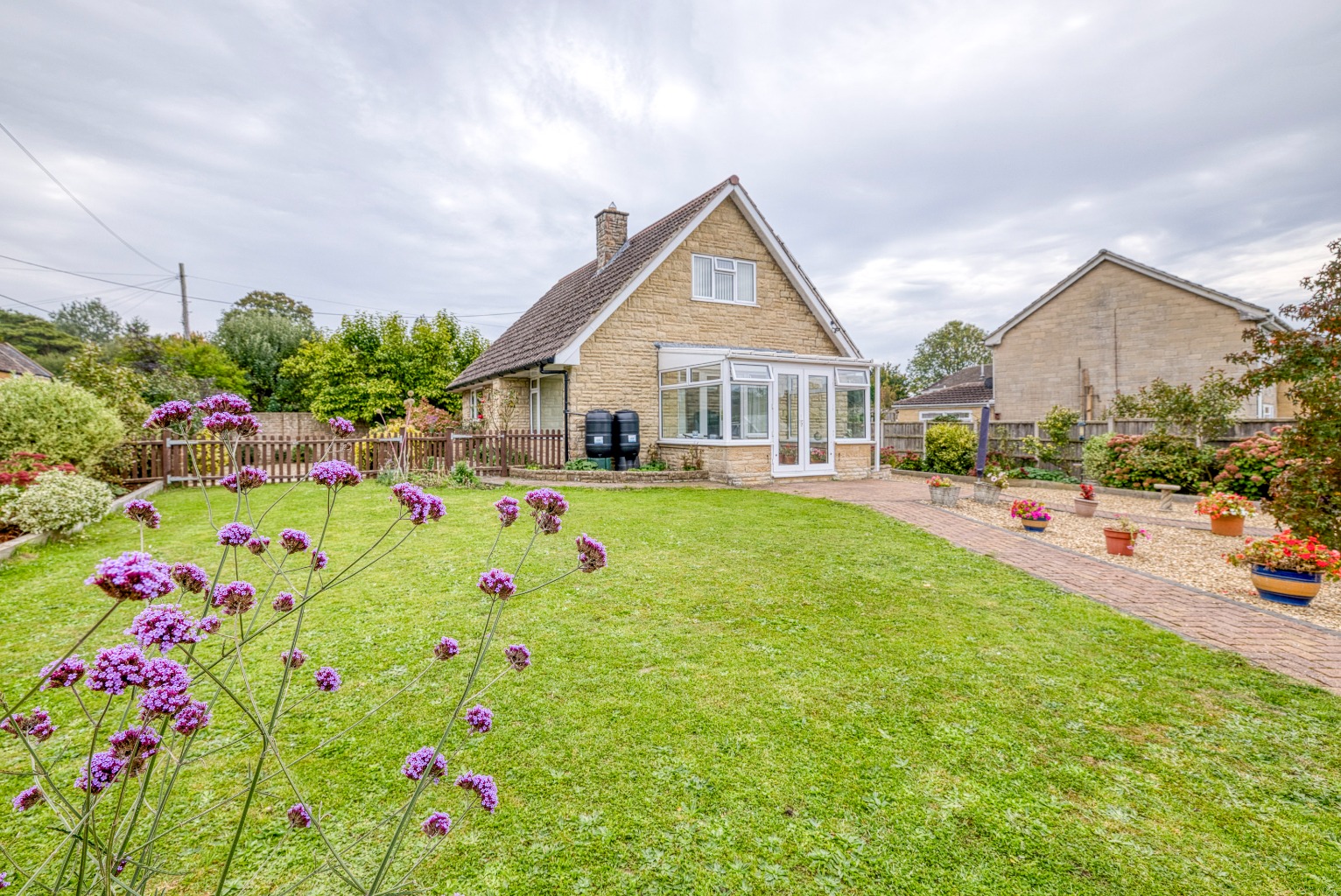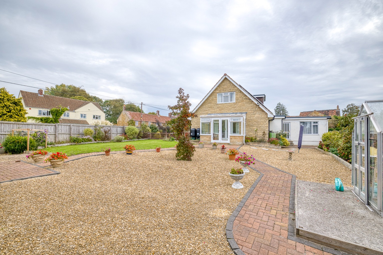 Mature south-facing gardens with seating areas