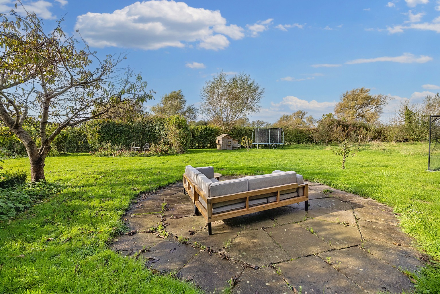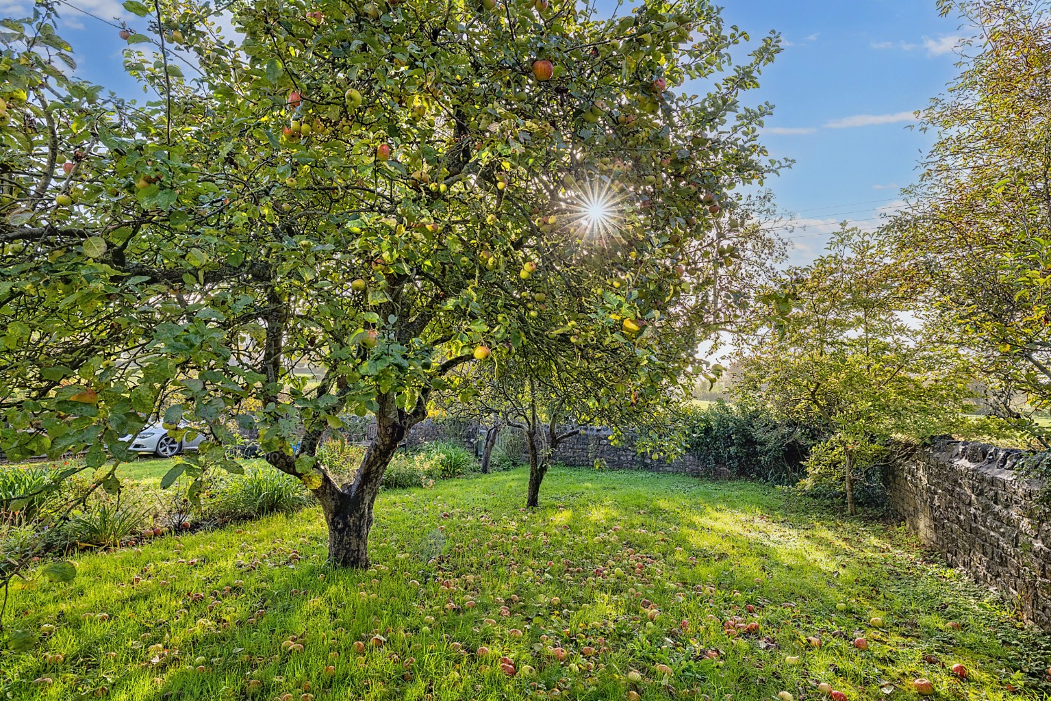 Outside there's plenty of parking and a double garage. The mature gardens are a delight with a paved terrace, lawns, herbaceous borders, rose beds, a well arranged kitchen garden and an orchard paddock. In all, just under an acre.