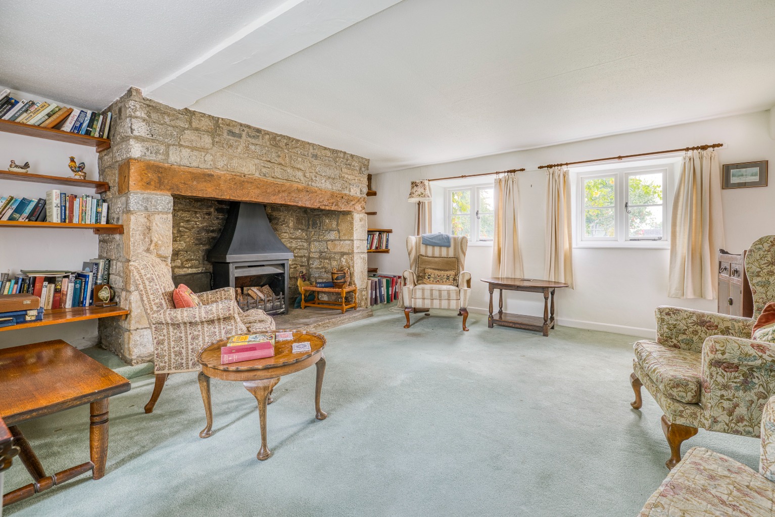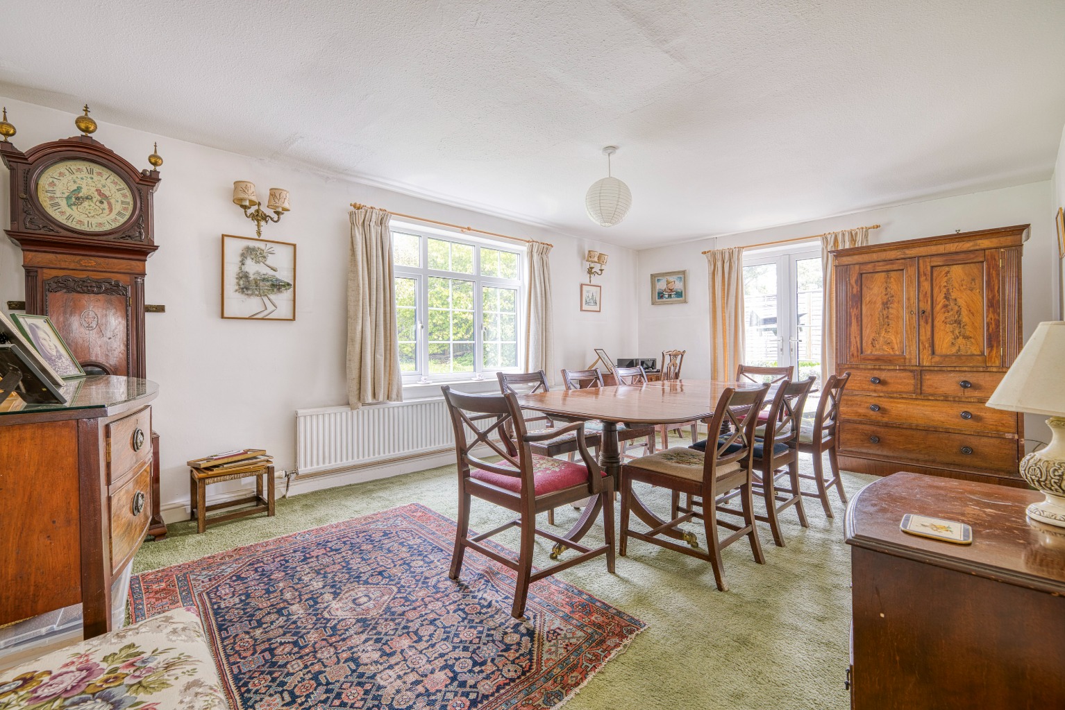 The sitting room is a bright and generous space with dual aspect windows and another inglenook fireplace. The dining room is equally spacious, with French doors opening to the rear garden—perfect for entertaining.