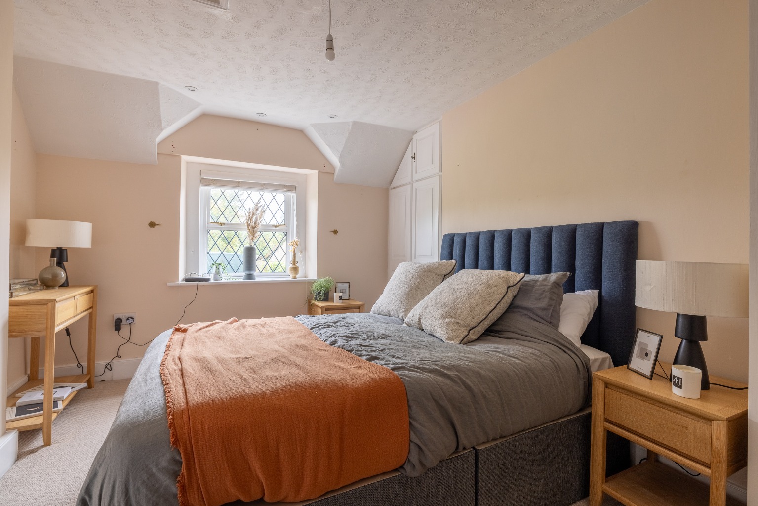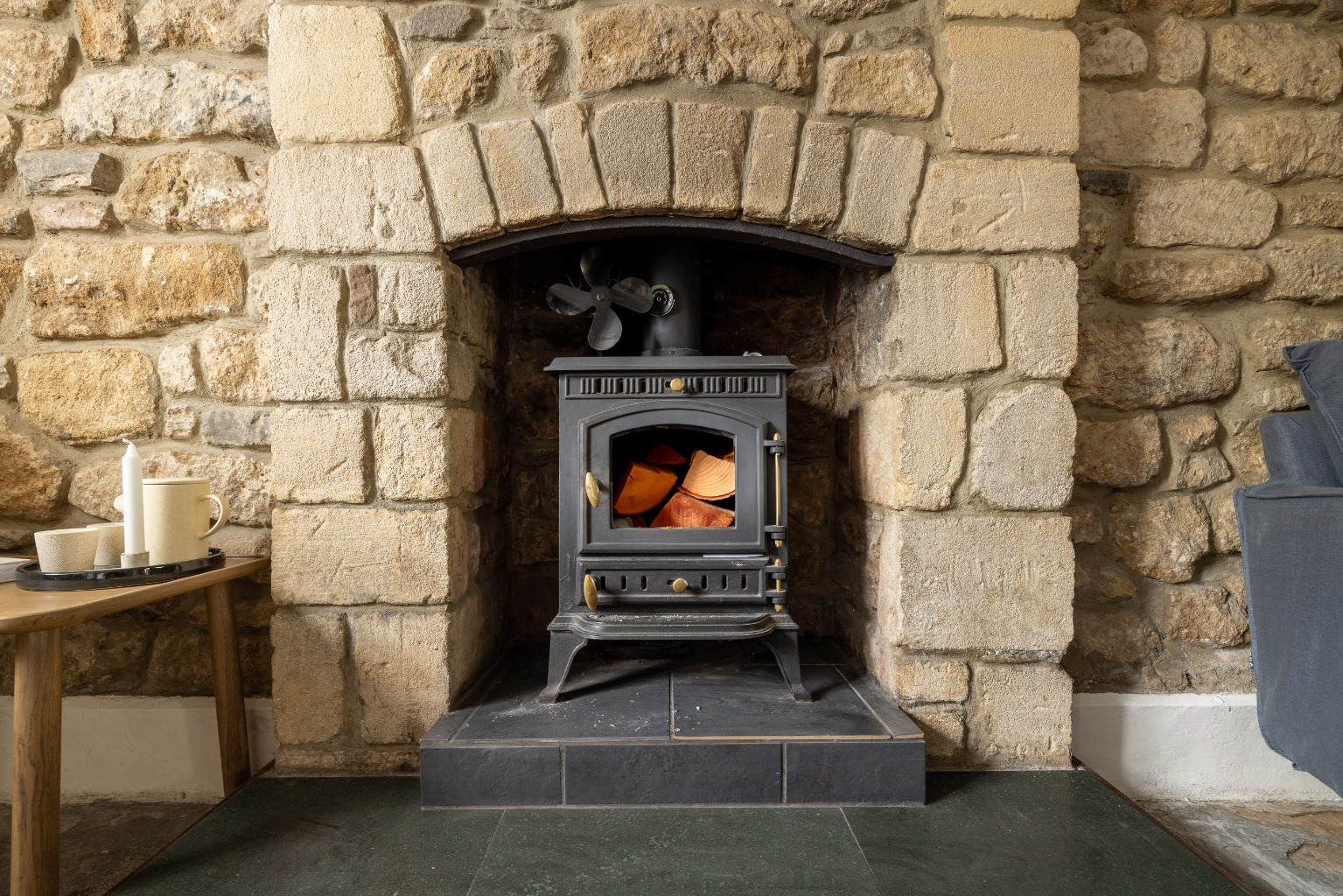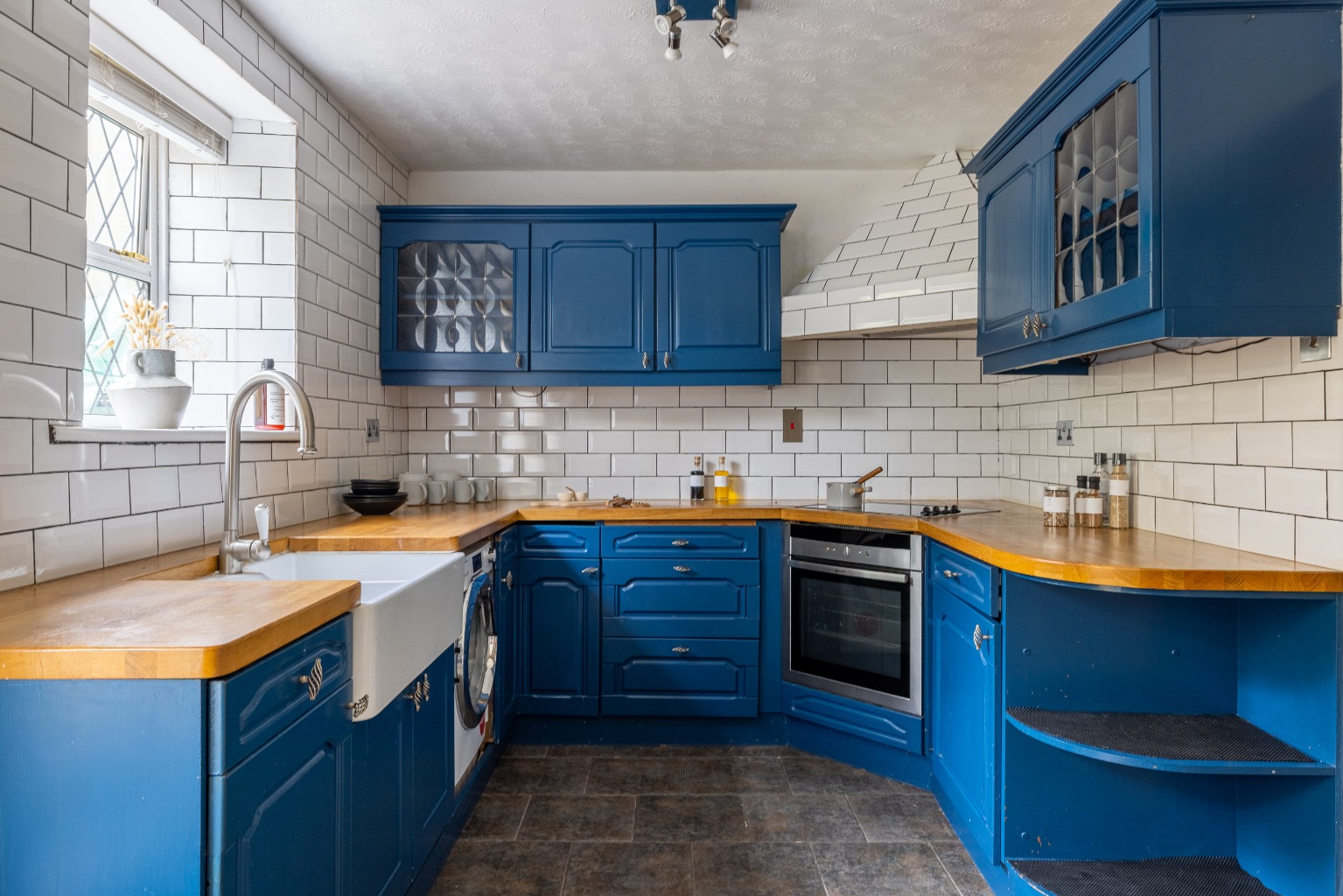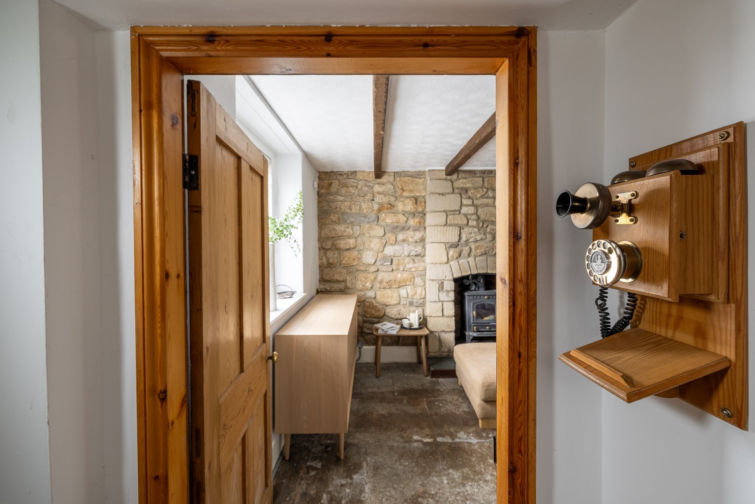 The front door opens to a central entrance hall. To the right is a living room and to the left a sitting room. Both have log burning stoves as focal points and windows to the east to catch the morning sun. The sitting room connects with the dining area through an attractive archway, which allows light to flood in from the windows on the west in the evening. The kitchen/dining room is spacious and bright, with painted, fitted units at the kitchen end, a double Belfast sink, and wooden worksurfaces. There is an integrated slimline dishwasher and electric oven, hob and extractor, with space for a washing machine and fridge/freezer and two large windows overlook the garden and a glazed door opens to the terrace at the rear. Glazed, double internal doors take you back into the living room.