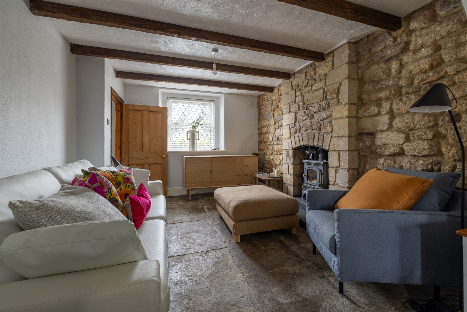 The house is full of character with flagstone floors, exposed beams and stone walls, log burning stoves and ledge and brace doors. There is natural light flooding through the ground floor and plenty of storage throughout with built in shelves, cupboards and wardrobes. The garage/workshop is a hugely versatile building with access down a private lane.