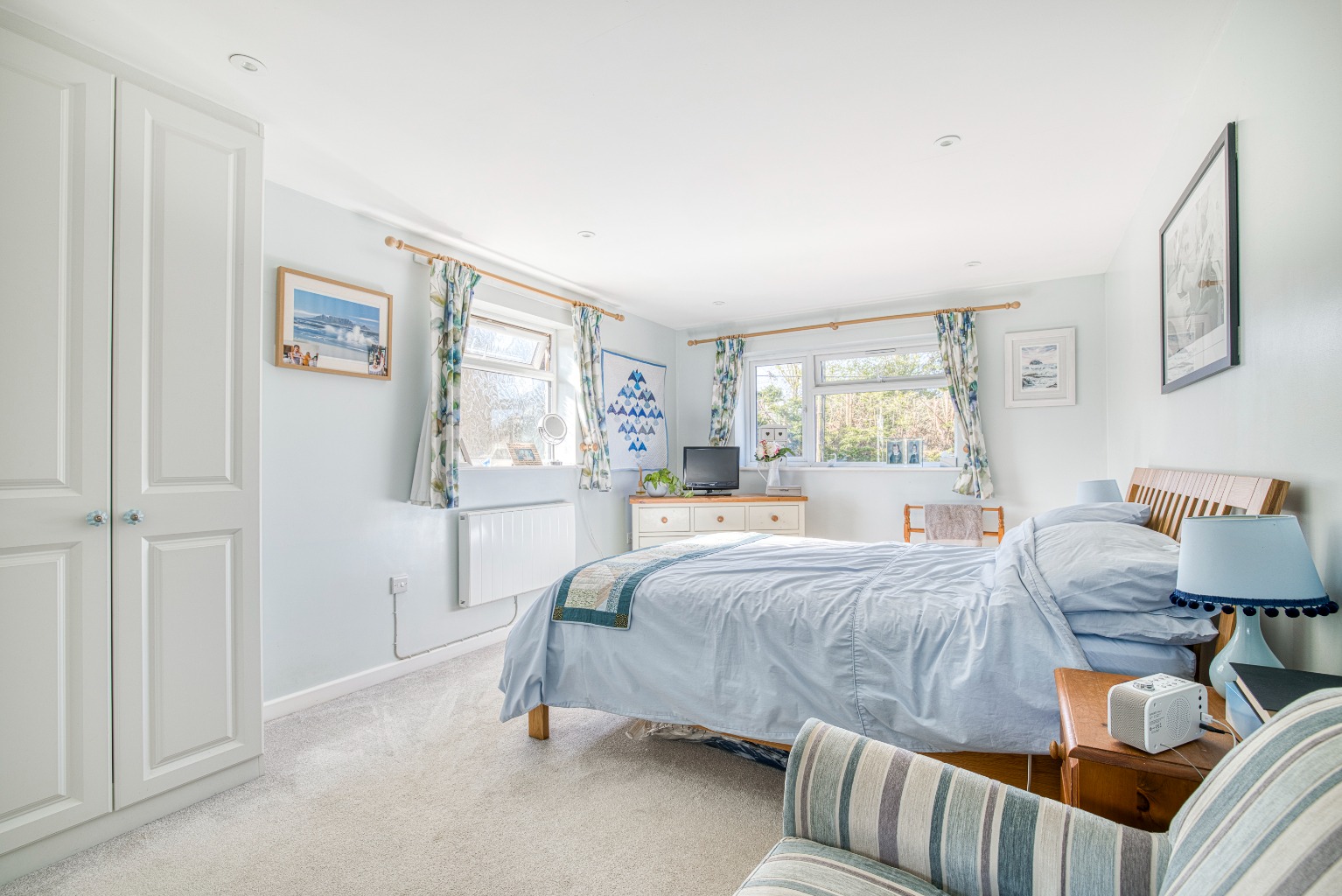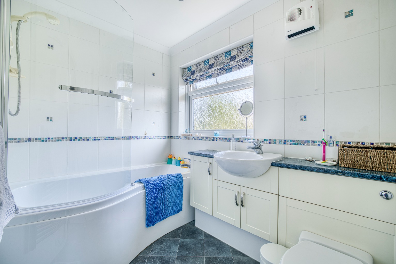 Upstairs, the standout feature is undoubtedly the impressive master suite. This spacious bedroom enjoys a dual aspect and benefits from a sleek en-suite shower room with fitted bathroom furniture. Three further bedrooms and a family bathroom – fitted with a shower bath and built-in storage – complete the first floor.