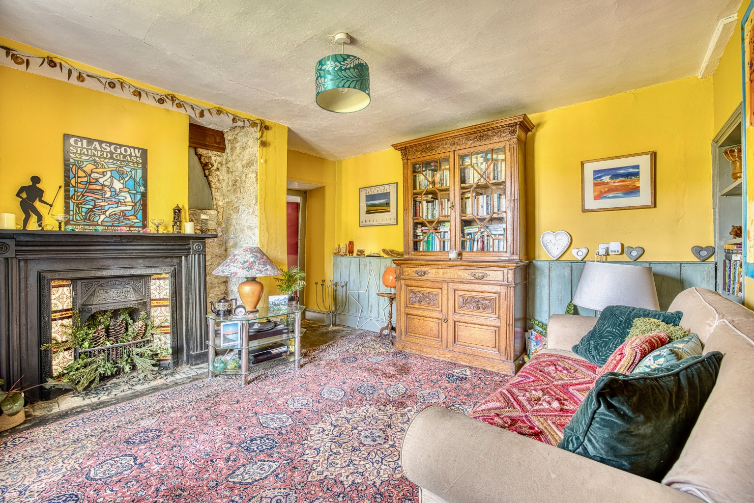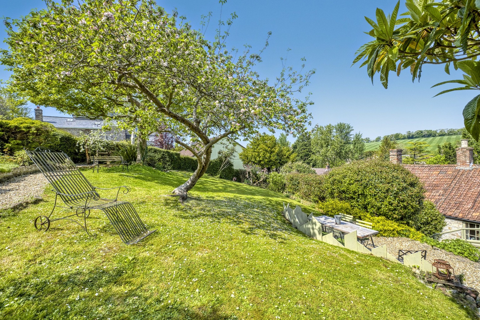 Steps up to elevated rear garden with fabulous, far-reaching views and a level area for ball games