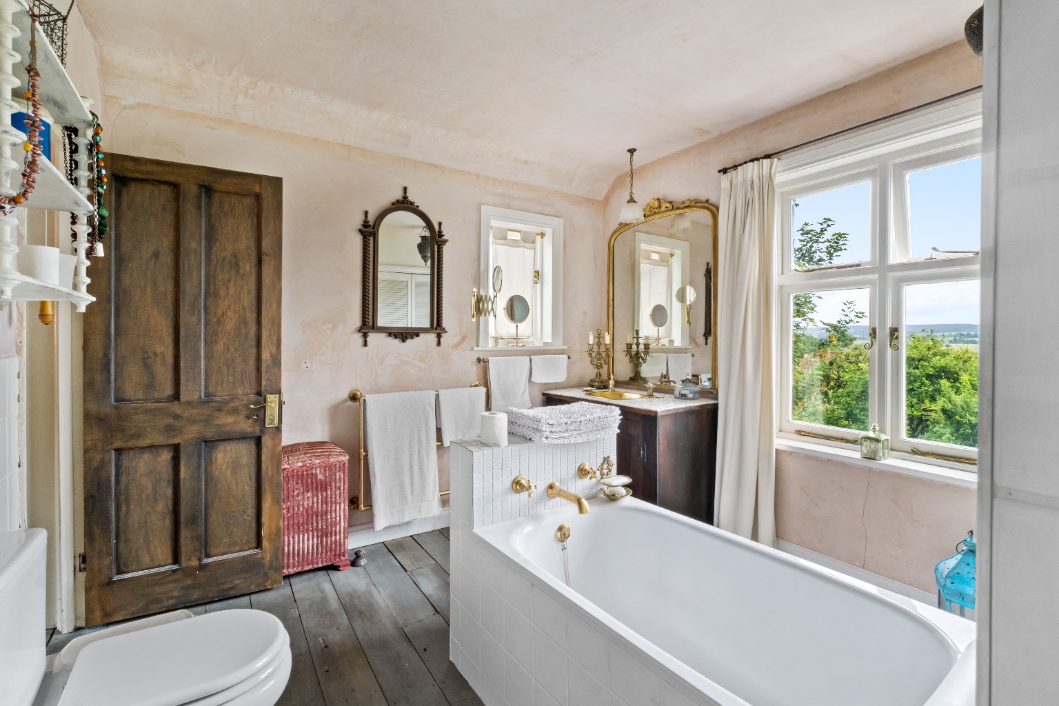 On the first floor, there are two double bedrooms which both have built-in wardrobes and spectacular views. The bathroom has a centrally positioned bath, separate shower, bespoke vanity unit with inset basin, w/c, and towel rail.