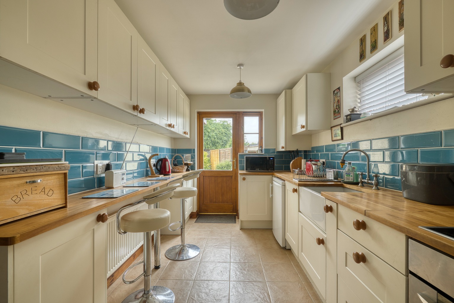 The bright, double-aspect kitchen features a breakfast bar, Belfast sink, electric hob, oven and extractor. There is ample...