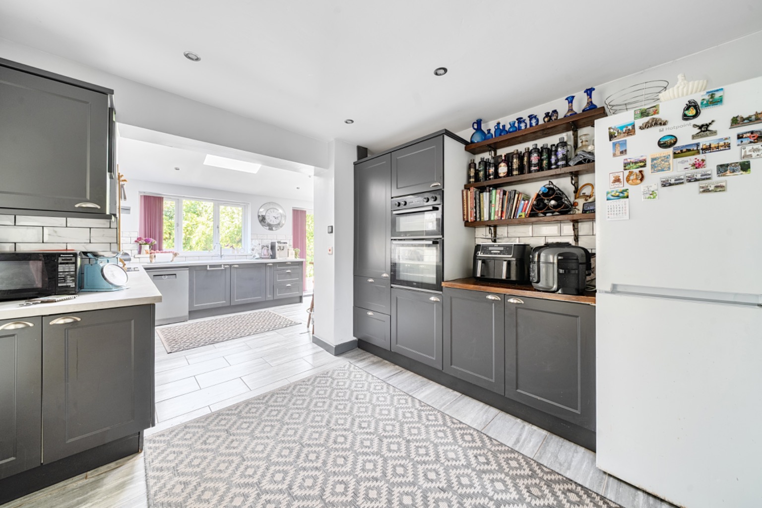 A door to the side leads out into the utility and cloakroom, as well a door into the garage and rear garden.