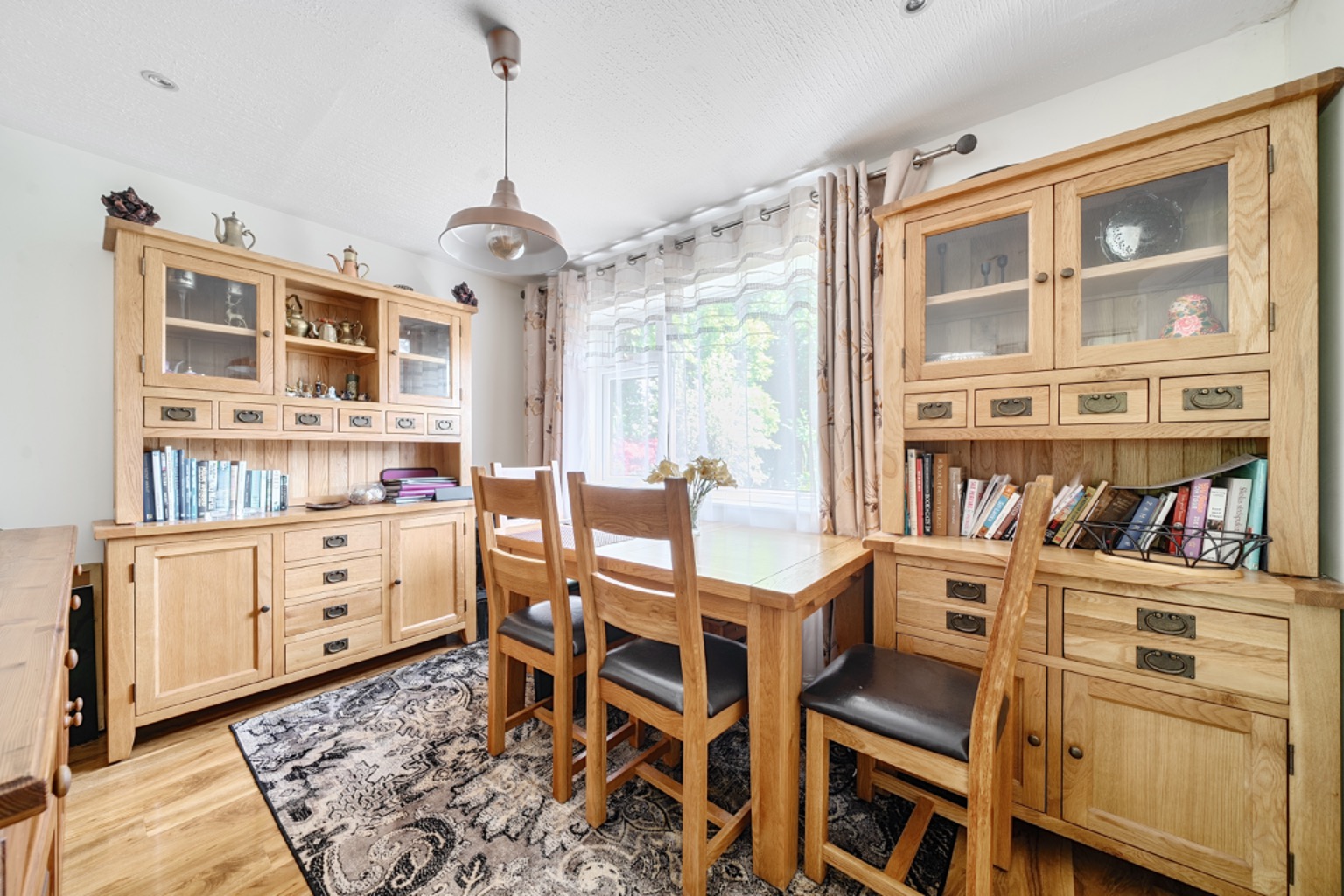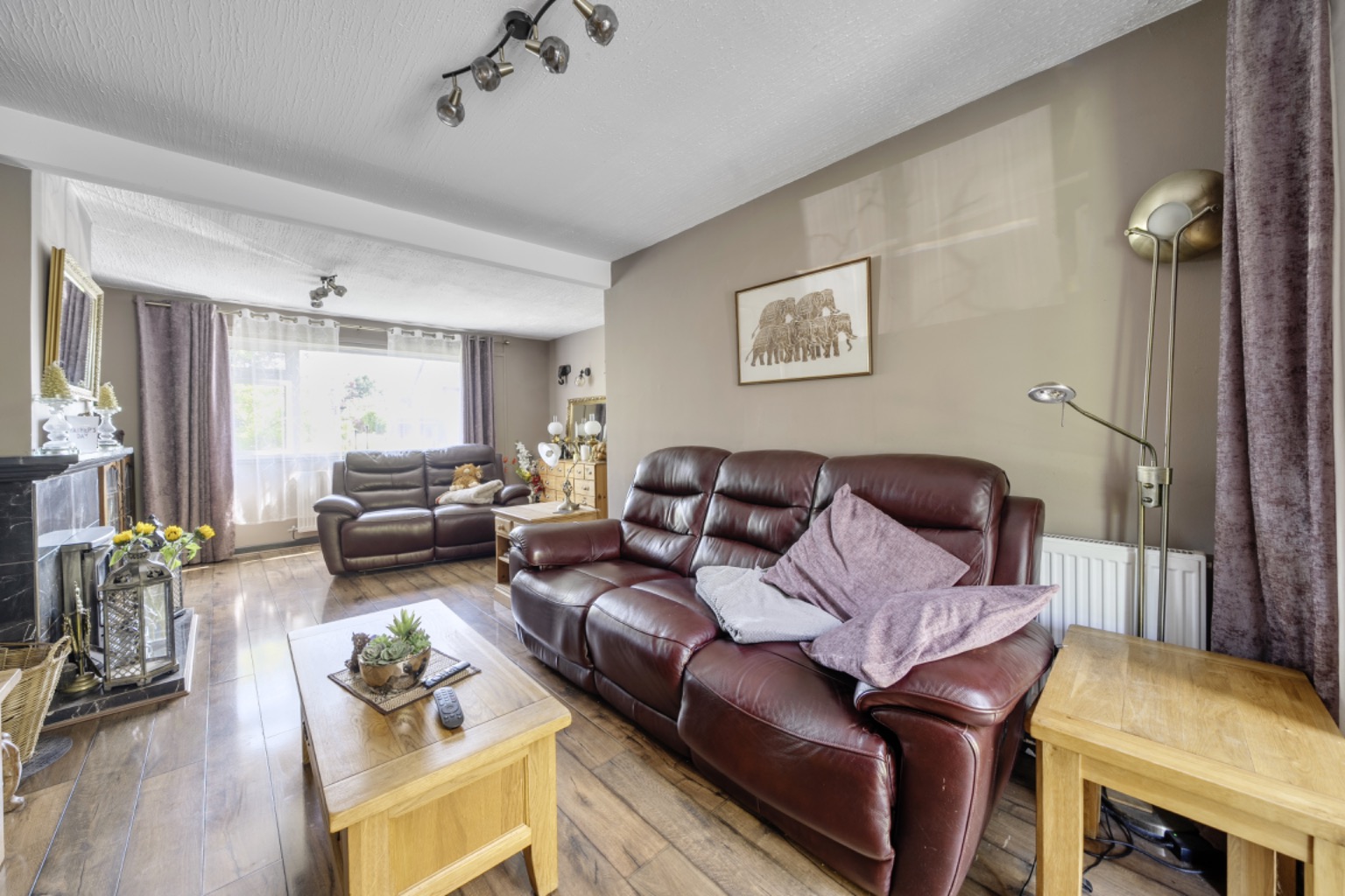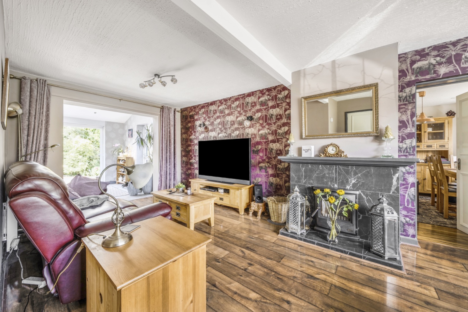 The living room is a light and open reception area with wood-effect flooring, a front aspect double-glazed window, and a delightful log burner which creates a cosy focal point. From here, an open archway connects to the kitchen/breakfast room, whilst a further doorway leads out to the dining room and then the study or ground floor 4th bedroom.