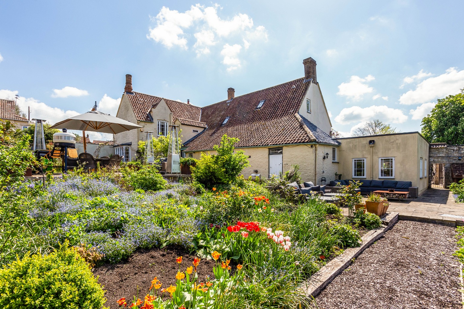 The Old Rectory is a gracious and comfortable family home, full of warmth and style, ideal for everyday living and entertaining alike. It includes a superbly fitted kitchen, elegant reception rooms, five bedrooms, and delightful outdoor spaces that unfold across a series of garden areas.