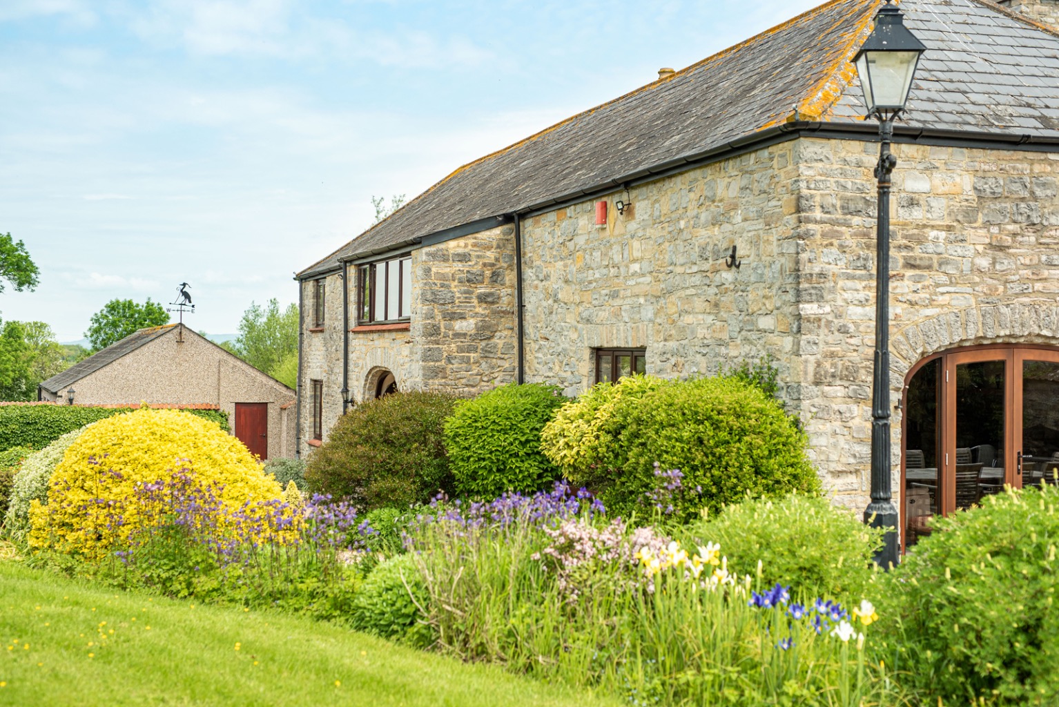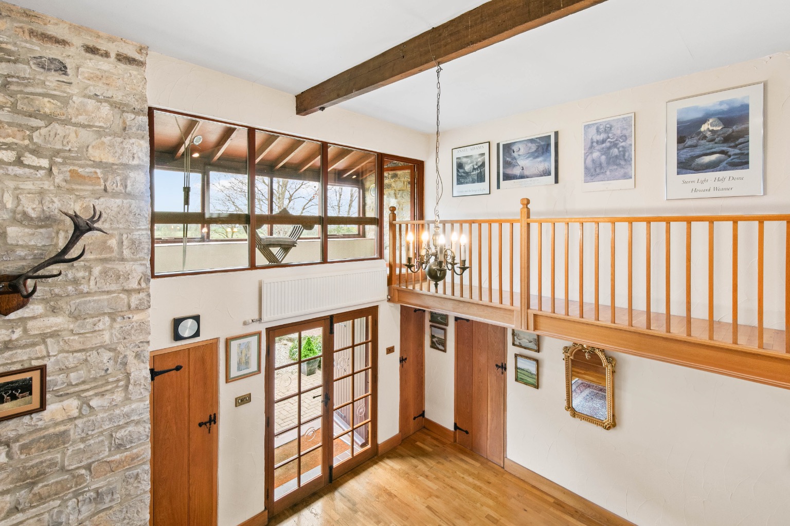 Throughout the property, careful attention to detail is evident, with features including American oak latch doors, exposed stone walls, flagstone and oak flooring and exposed beams.