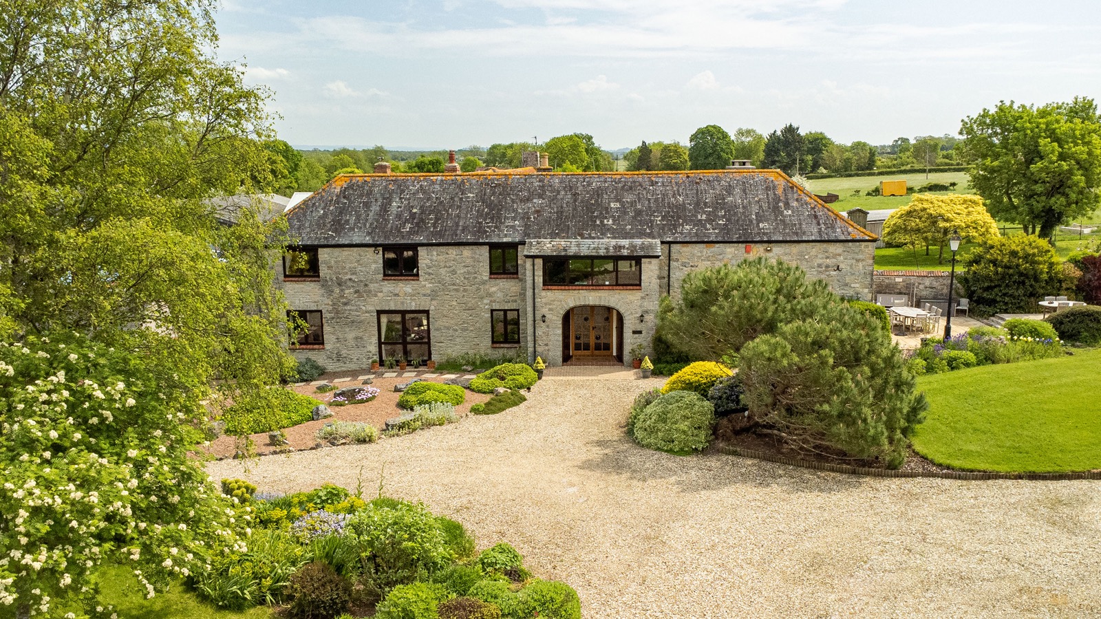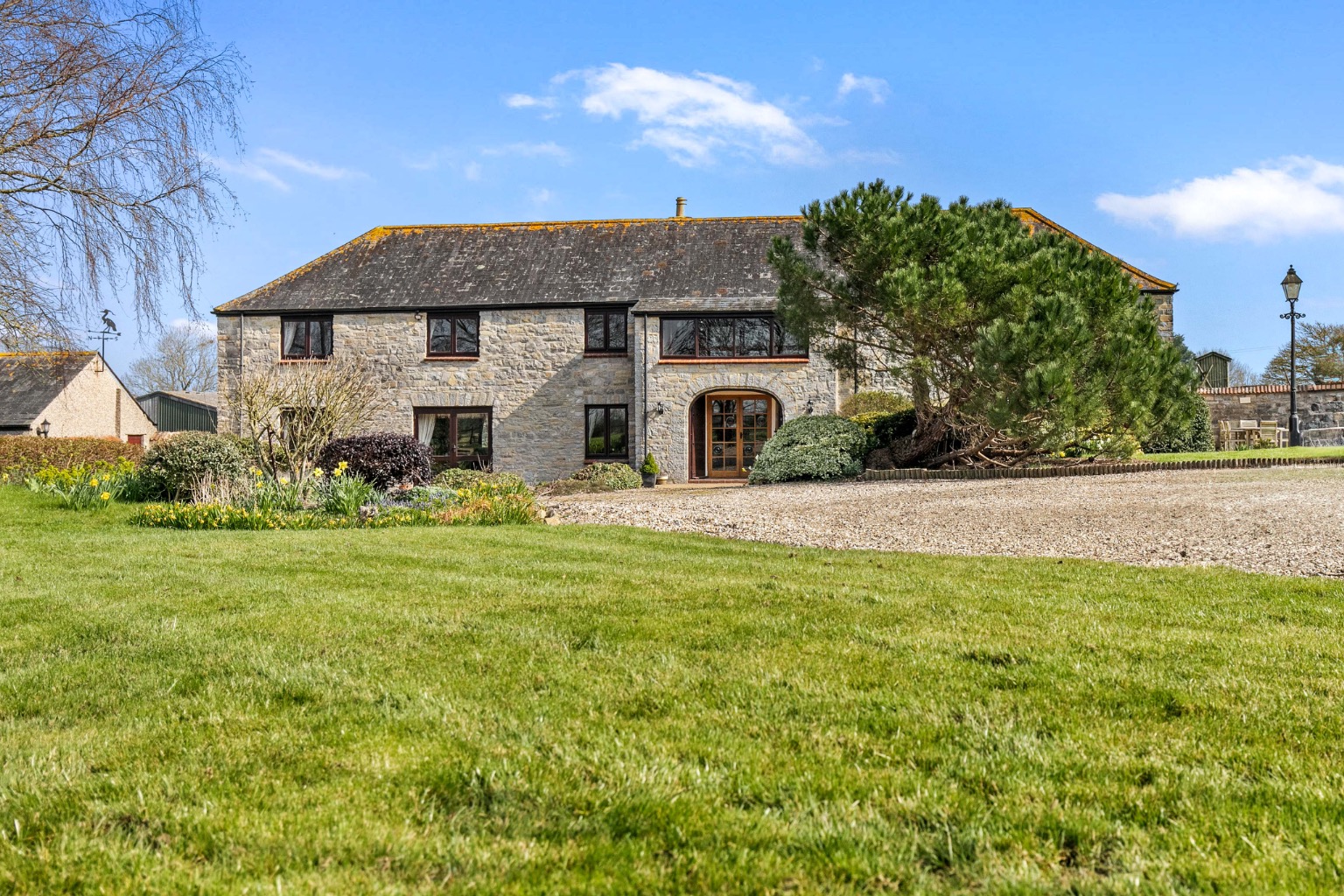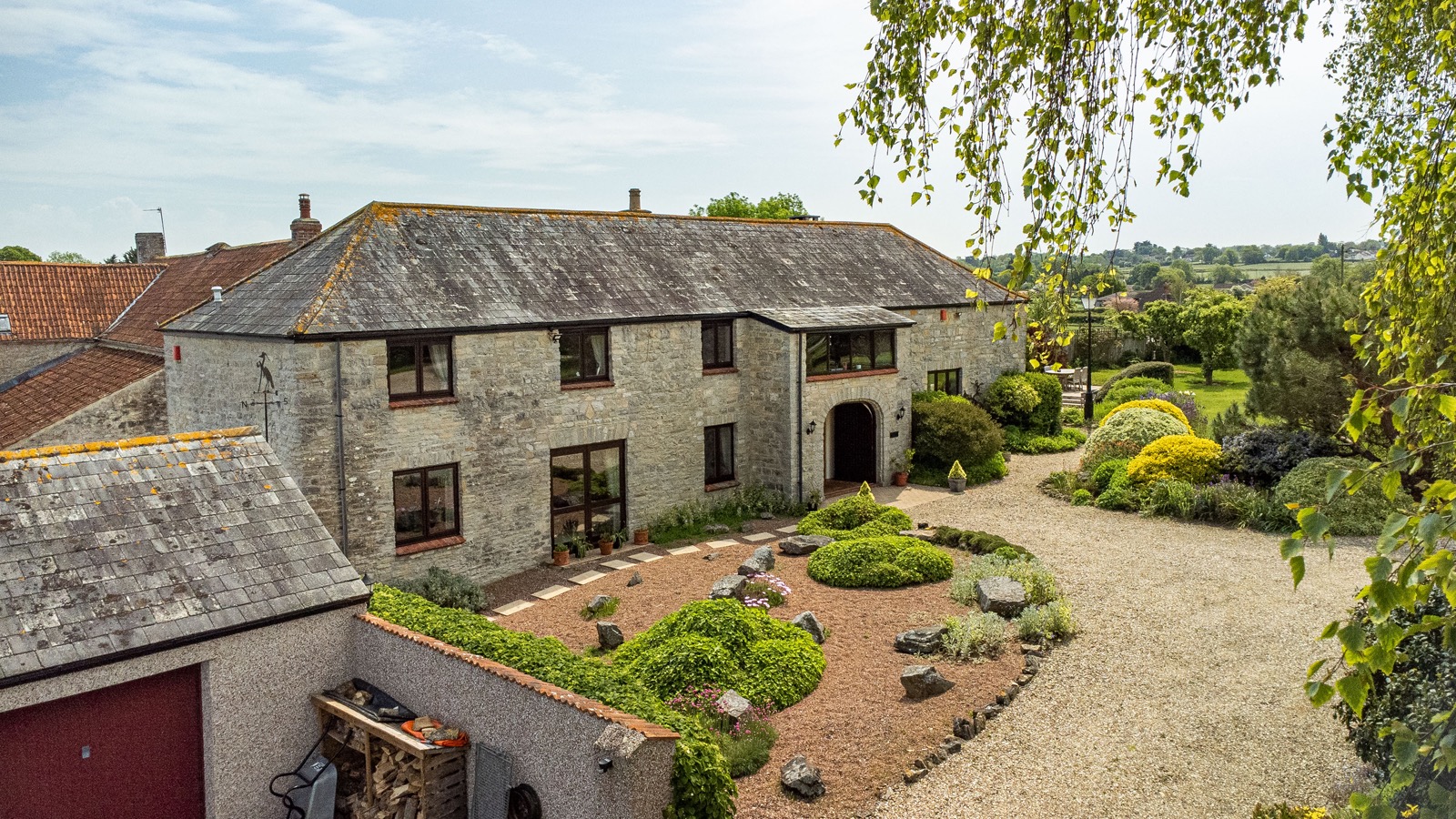 Approached via Broadmead Lane, a cattle grid and five-bar gate open onto a sweeping gravel driveway, leading through delightful gardens, an orchard, and a woodland area to the barn. There is sufficient parking and a triple garage.