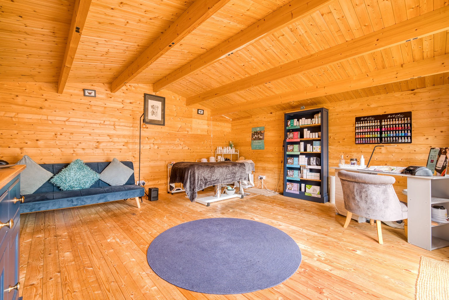 The gardens are a particular feature. To the front, large gates secure a gravel driveway with ample parking for several cars. The garden here is mainly lawned, with timber fencing and hedged boundaries. To the rear, the garden is completely private and includes a lawn with a decked seating area and a timber shed. A further benefit is a substantial wooden cabin at the front of the property. Currently used as a beauty s...