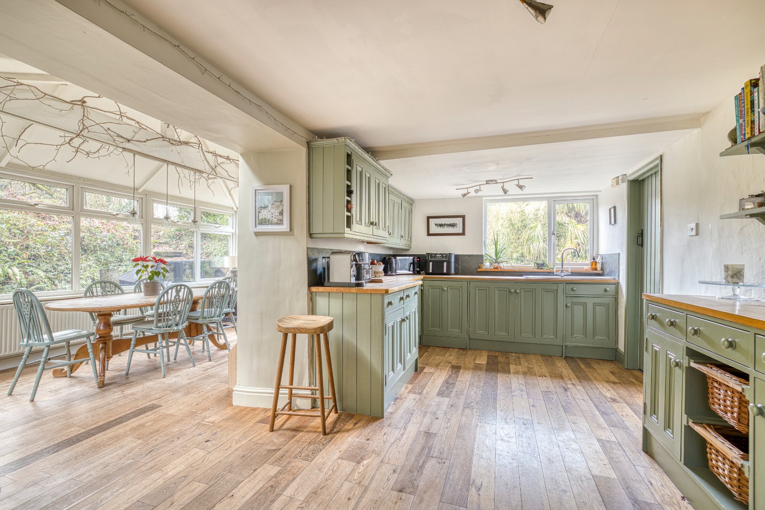 A handsome country cottage which has been substantially improved and has excellent accommodation and considerable character. It includes a porch, sitting room, a well fitted kitchen opening into a large garden/dining room, 3 bedrooms, a study (or small child’s bedroom) shower room and bathroom.