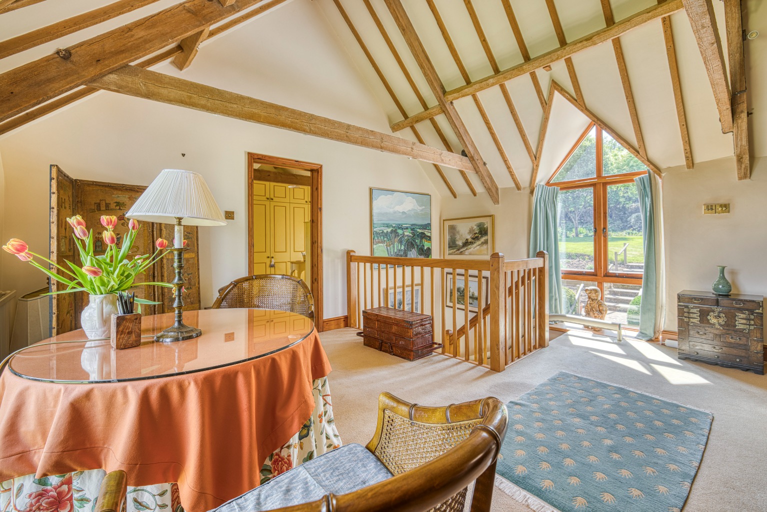 Orchard Stables has characterful and versatile accommodation including a reception hall, dining room, kitchen, breakfast room, two ground-floor bedrooms with a nearby shower room, a most impressive first-floor sitting room, and a master bedroom suite with a dressing room and shower room en-suite.