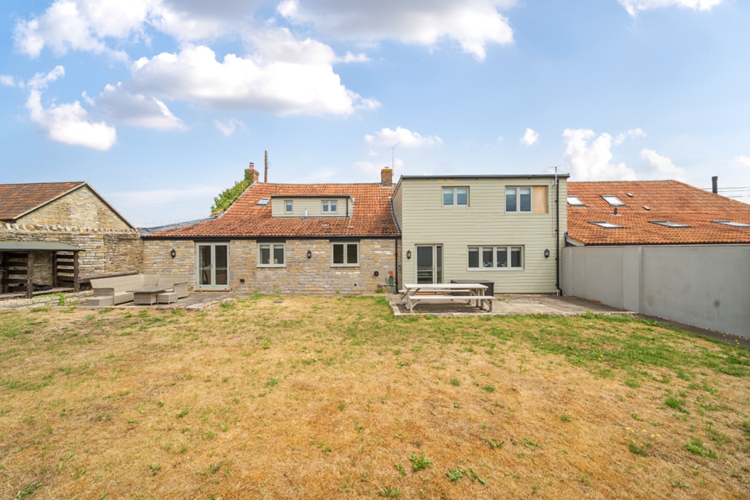 The house is nestled on a quiet country lane, on the outskirts of the village, opposite the village playing fields.